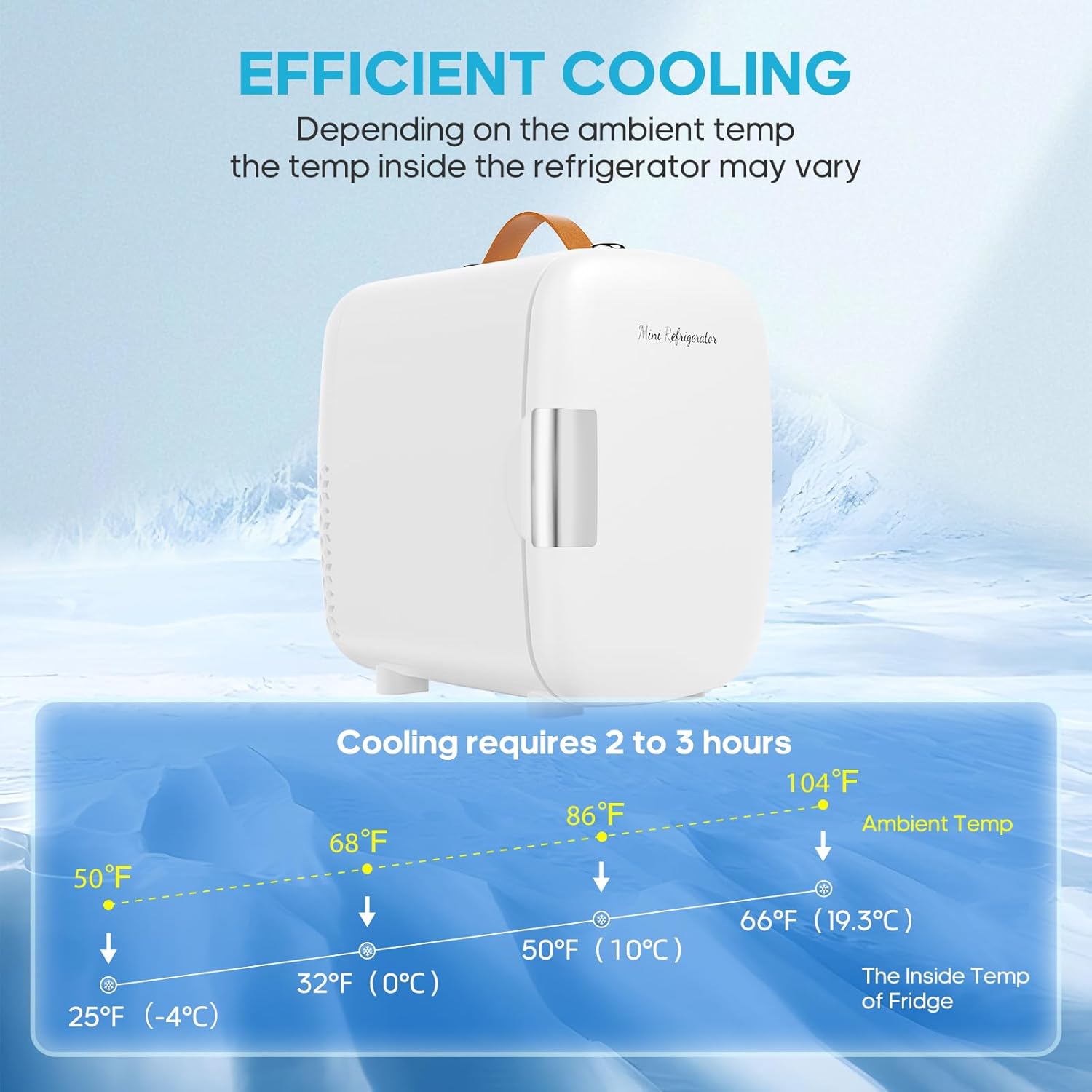 Editor's Pick: The DUMOS mini refrigerator has a 4-liter capacity that can hold 6 cans of 11oz beverages, perfect for storing skincare products, drinks, and snacks. It features a semiconductor cooling system with only 31dB of operating noise, ensuring it won't disturb your rest even when used at night. The lightweight design (3.53 pounds) includes a built-in handle, making it easy to transport between bedroom, office, dorm, or car.