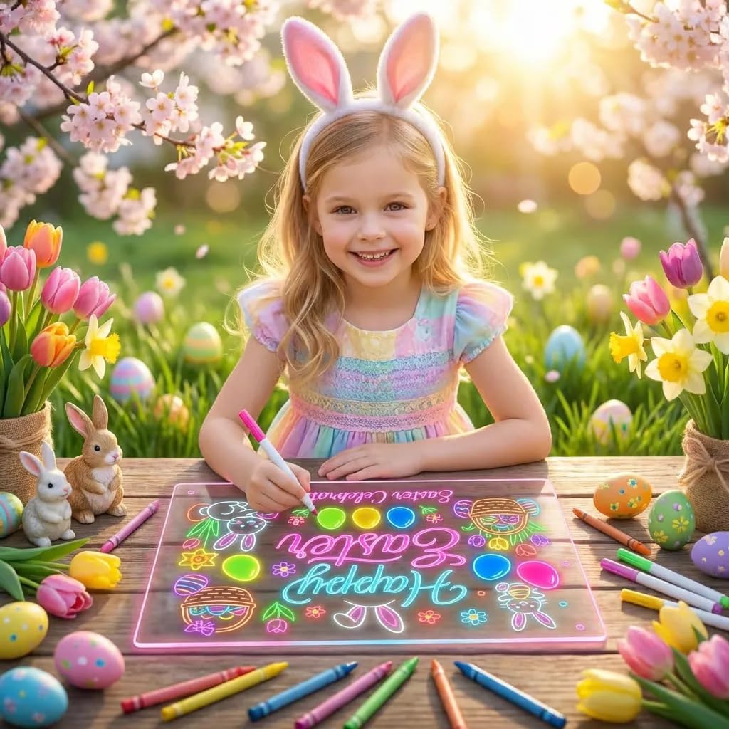 Editor's Pick: This LED drawing board is made from polished acrylic material with a durable, scratch-resistant surface. It features 7 RGB light colors and 4 lighting effect modes, including both dynamic and static effects, allowing you to choose the perfect atmosphere for your creations. The set includes 7 water-soluble markers, a cleaning cloth, spray bottle, and hidden stand among other tools, making it convenient to start creating immediately and easily modify your work.