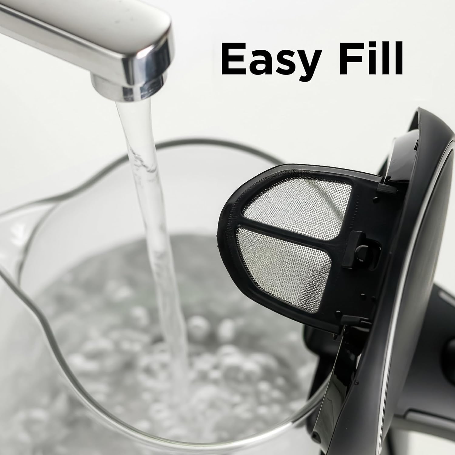 Editor's Pick: This electric kettle features high borosilicate glass and stainless steel materials, combining elegance with durability. The 1.5L capacity can boil water in just 7 minutes, perfect for brewing coffee, tea, or preparing instant foods. Equipped with automatic shut-off and boil-dry protection features for safe use. The removable filter makes cleaning easy, while the 360° rotating base with built-in cord storage offers convenient operation and keeps countertops tidy.