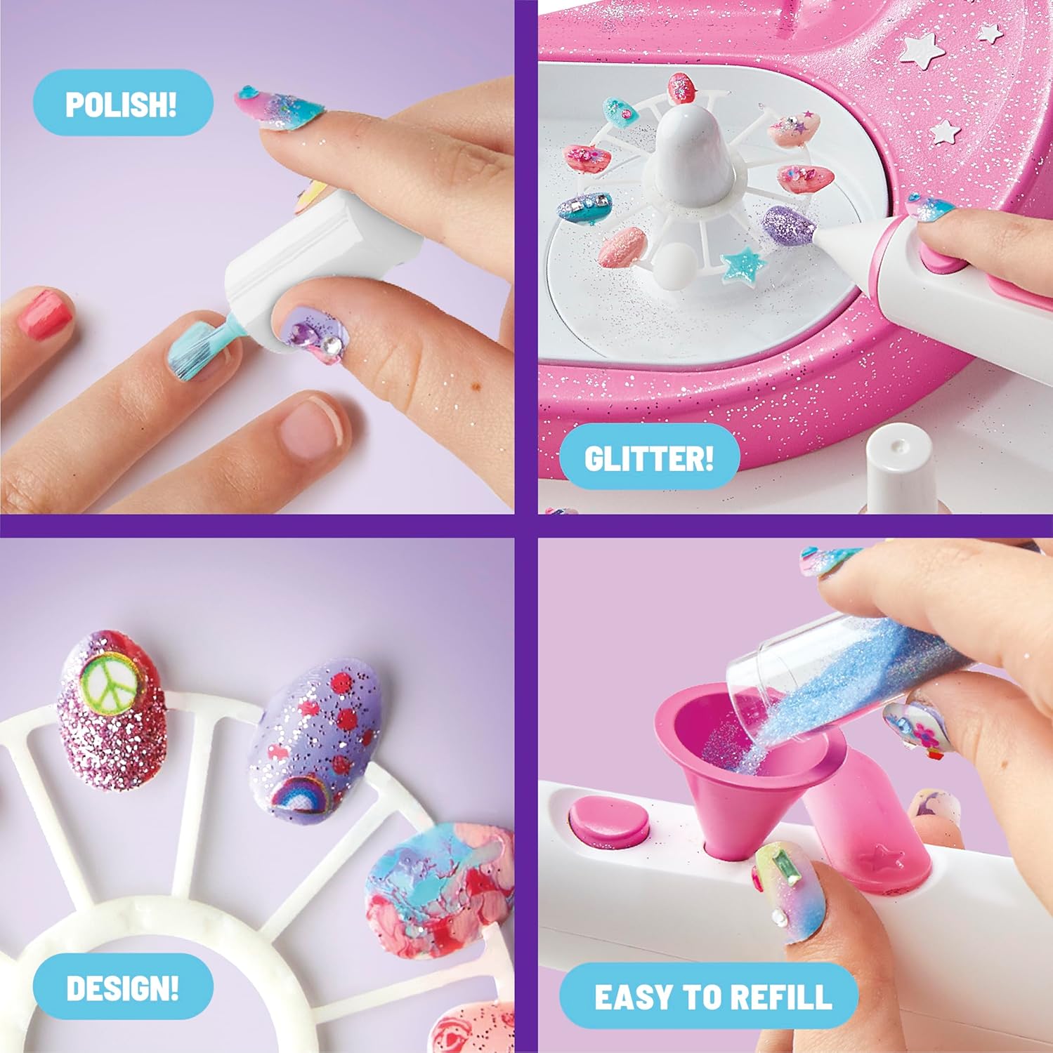 Editor's Pick: This nail art set includes 67 accessories such as nail tips, stickers, glitter, nail polish, decorative gems, and tools, offering various styling options. The set comes with a refillable spray glitter pen that easily adds sparkle to your nails. The included storage base keeps all nail supplies neatly organized for easy access, perfect for girls who love colorful and creative nail art projects.