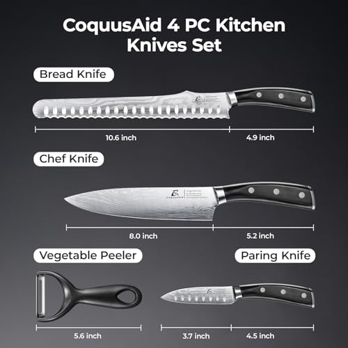 CoquusAid 4-Piece High Carbon Stainless Steel Chef Knife Set