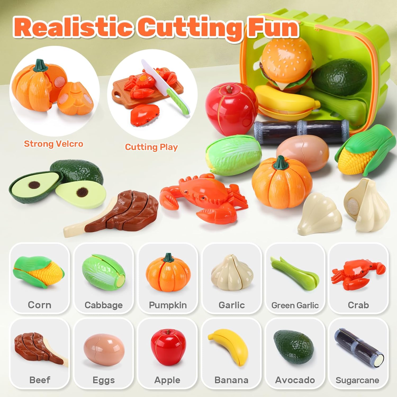 Editor's Pick: This 70-piece kitchen toy set is fully equipped with pots, utensils, a shopping basket, peelable and cuttable fruits and vegetables, and more—no need for additional purchases. The food items feature a double-layer Velcro design that allows peeling and cutting, with a realistic "crunch" sound when sliced, effectively training fine motor skills and hand-eye coordination. Made of BPA-free ABS plastic, it is smooth, odorless, and easy to clean. Suitable for children ages 3 and up, it encourages learning about cooking and social cooperation through role play.
