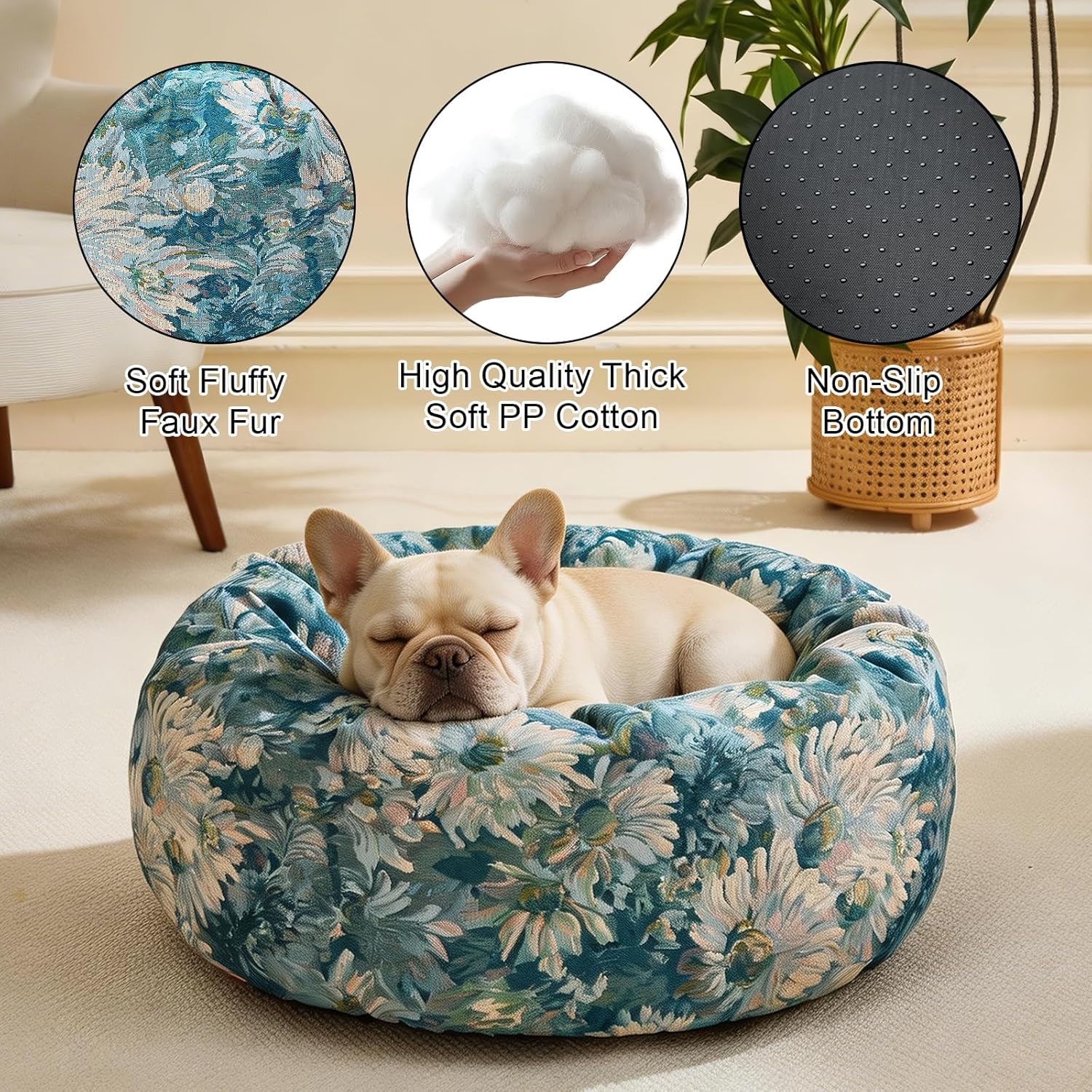 Editor's Pick: This pet bed features soft faux cashmere fabric and thickened PP cotton filling, providing comfortable support and a cozy wrap-around feel for your pet. The round raised edge design gives pets a sense of security, helps reduce anxiety, and promotes better sleep. The non-slip bottom keeps the bed stable, making it suitable for small to medium-sized dogs or cats. It's machine washable and dryer-safe for easy maintenance.