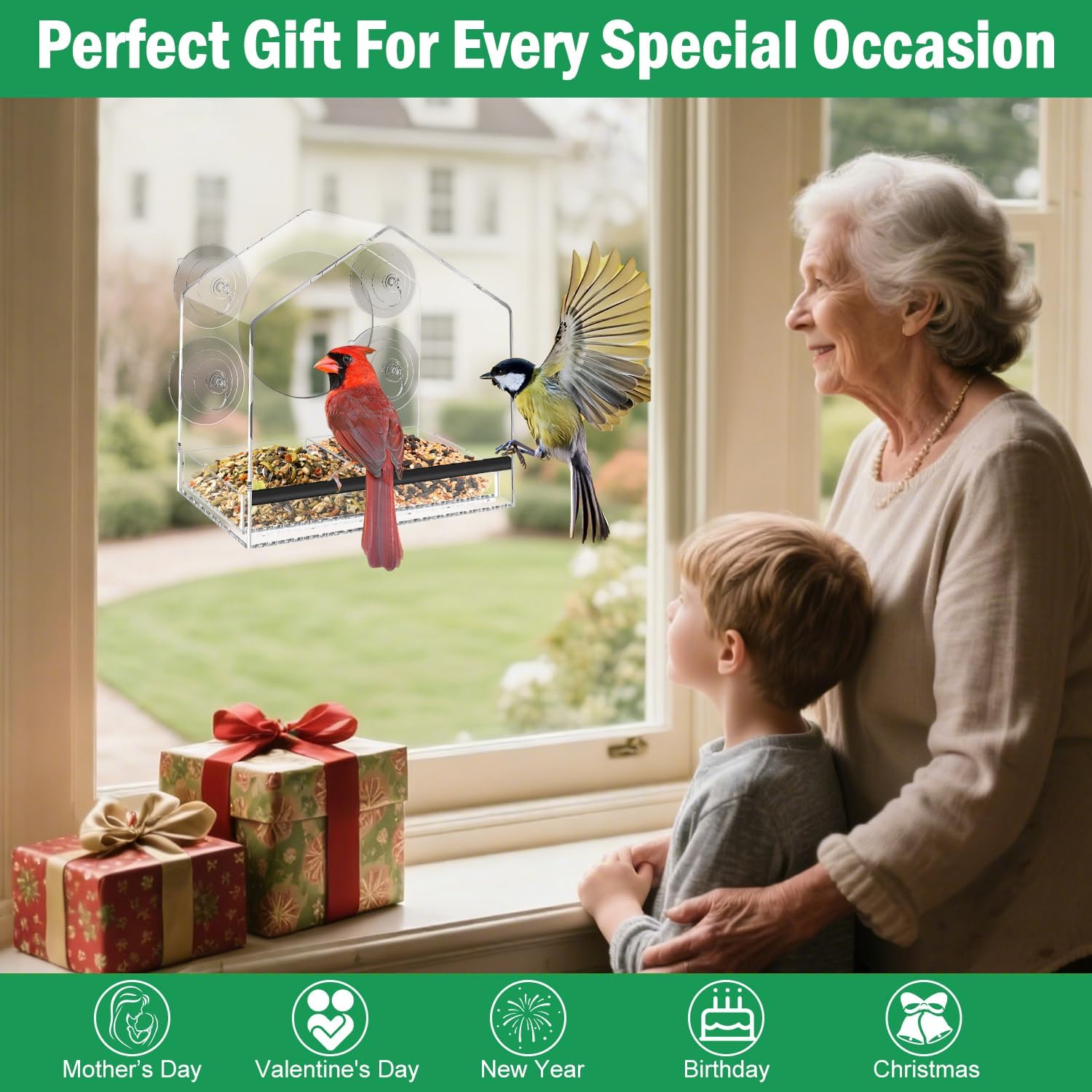 AI Review Summary: ⭐Amazon Rating: 4.5/5 (1,517 Reviews). Users generally report that this window bird feeder effectively attracts birds, has sturdy suction cups that withstand weather, and is easy to install with convenient viewing, providing "live bird TV" entertainment for families.