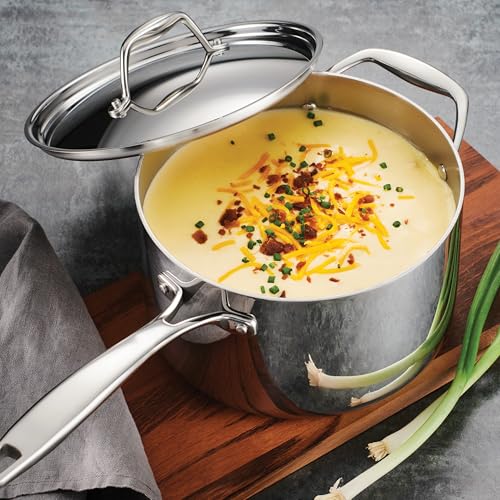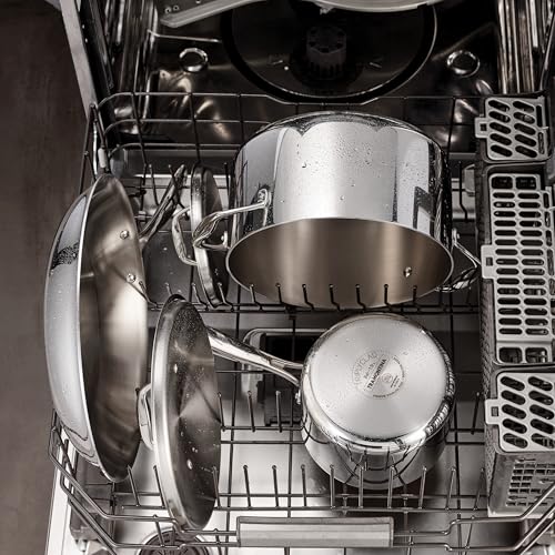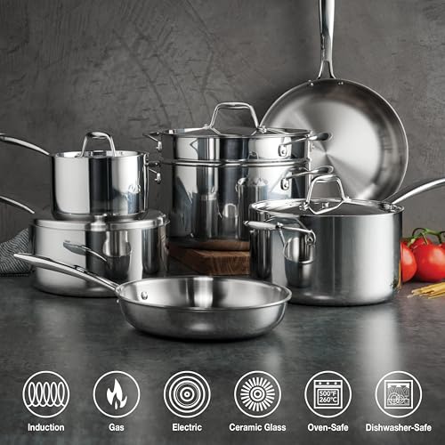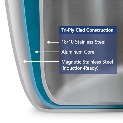 Editor's Pick: This Tramontina cookware set features a Tri-Ply three-layer composite structure with an aluminum core that ensures even heat distribution for precise cooking control. It's compatible with all stovetops, including induction, and can go directly into the oven (up to 500°F). The set includes frying pans, saucepans, stock pots, and matching lids, plus a strainer that perfectly fits into the 6-quart saucepan, meeting various cooking needs. The stainless steel lids and riveted handles are designed for durability and sturdiness.