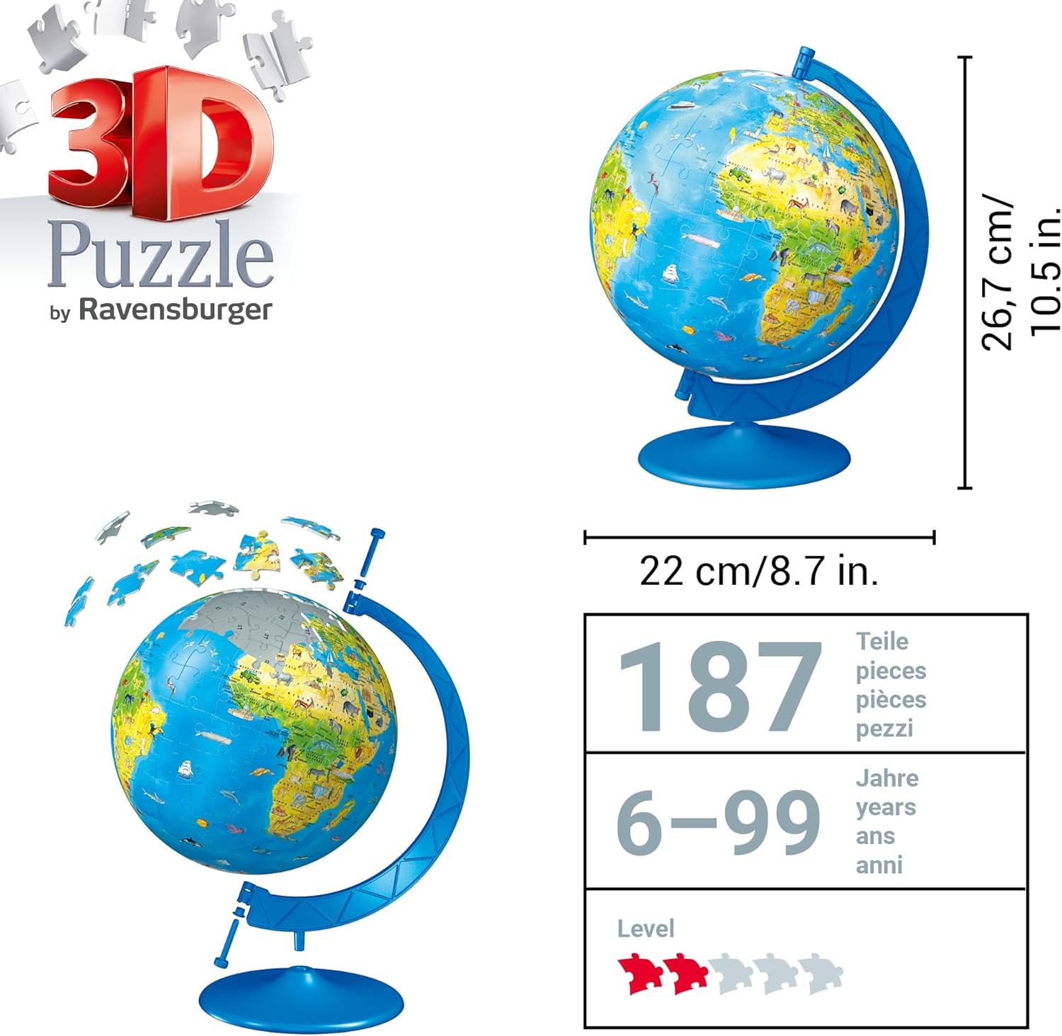 Ravensburger 3D Puzzle Children's Globe 180 Pieces 10.5 Inch