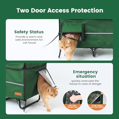 Editor's Pick: This large foldable cat house features a metal frame structure that's stable and durable. It's waterproof and insulated, making it suitable for outdoor use to provide warm shelter for stray cats. The design includes an escape door for added safety, and its green appearance blends easily with the environment.