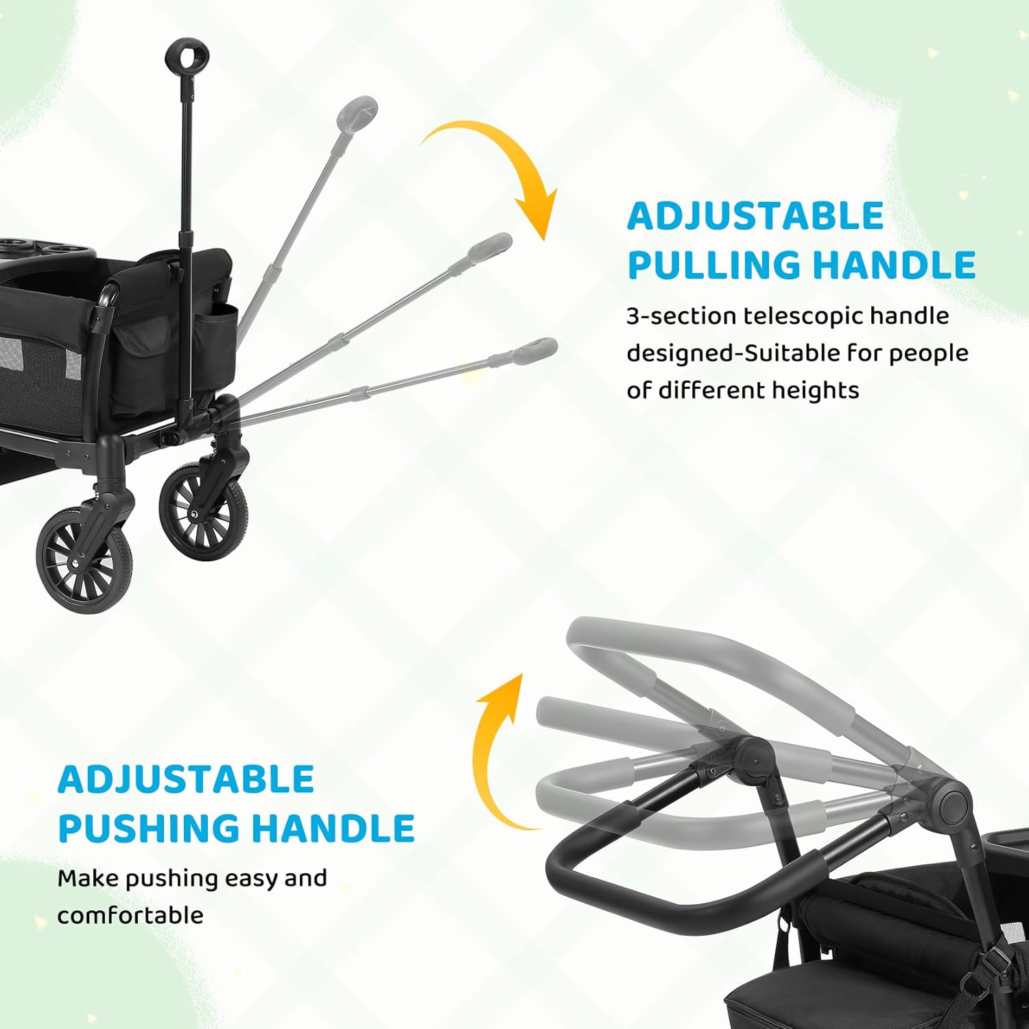 Editor's Pick: This double stroller features a heavy-duty steel frame construction that can support up to 110 pounds. It comes with an adjustable push/pull handle that easily converts between push and pull modes. The sliding/removable canopy provides UV protection, while the deep carriage with breathable mesh design ensures good air circulation. The seats feature a three-point safety harness with face-to-face design and a shared recessed footwell, providing more foot space for your babies. All-terrain EVA tires and shock absorption system adapt to various outdoor surfaces.