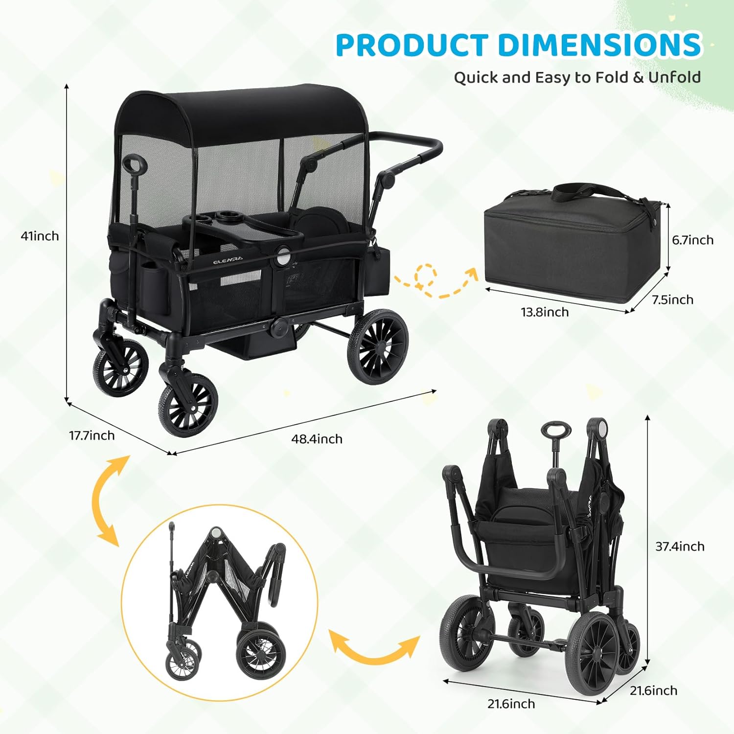 ELEMARA 2-Seat Stroller Removable Canopy Black