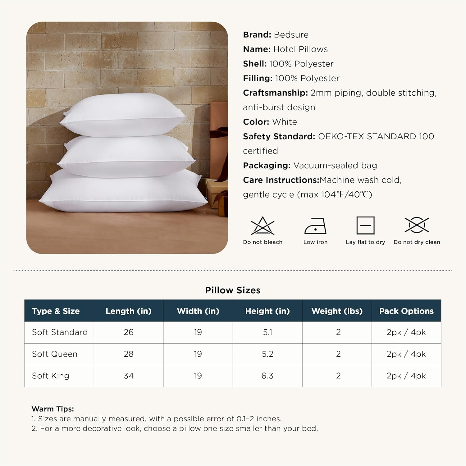 - Amazon now offers the Bedsure Queen Pillow Set (2-Pack, 28x19 inches, White) for $21.99 (list price $56.39).