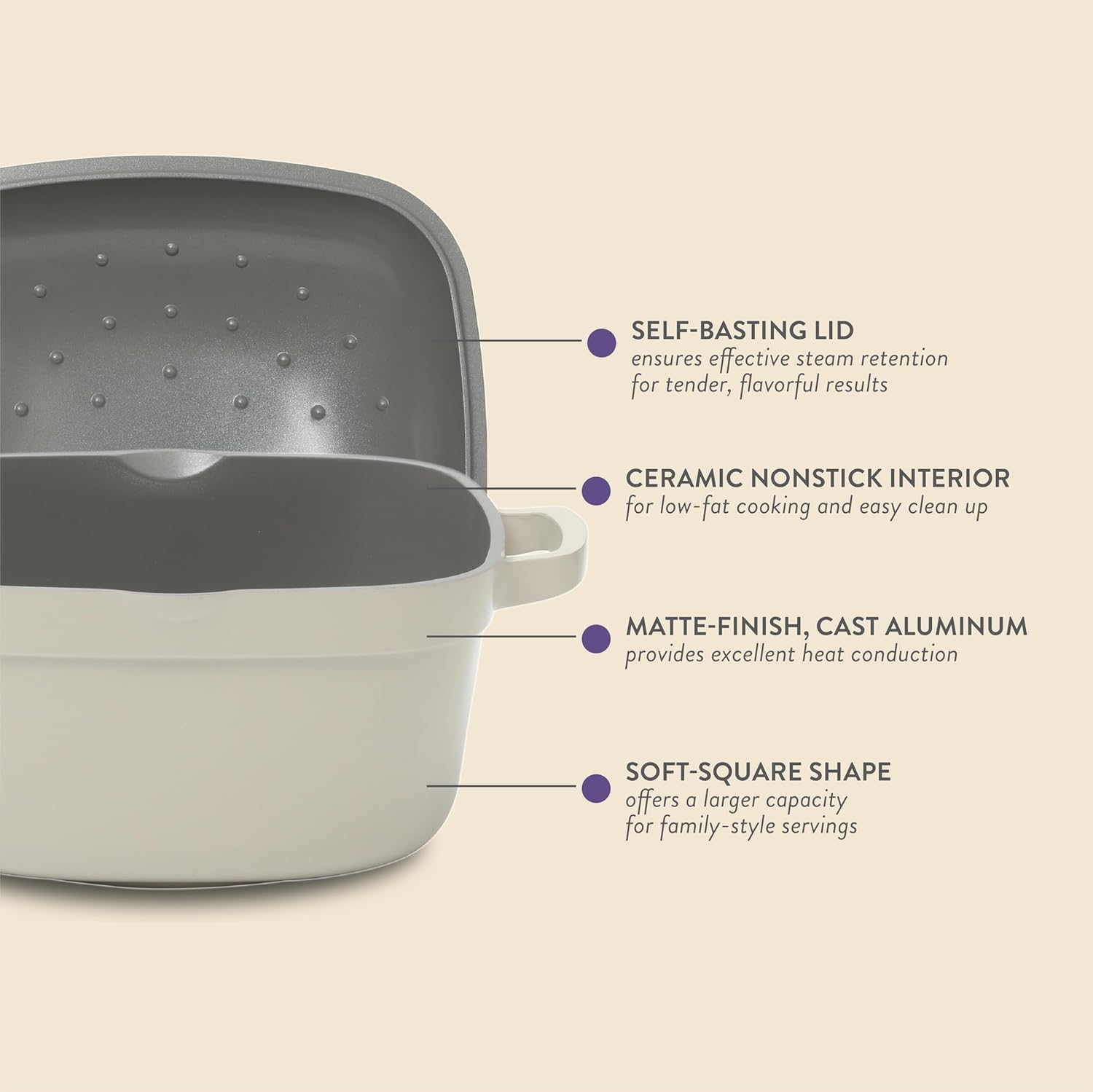 Editor's Pick: This 5.2-quart cast aluminum Dutch oven from Crock-Pot's classic collections is made with lightweight yet durable cast aluminum, providing even heat distribution. Its unique square design accommodates more ingredients, perfect for cooking family-sized stews and soups. The rounded corners serve as pour spouts, making it easy to transfer food or drain excess oil. The interior features a healthy ceramic non-stick coating that's free from chemicals like PFOA and PTFE, and is easy to clean. The sturdy dual-handle design makes carrying and moving convenient, and it's compatible with multiple cooking surfaces including induction cooktops and gas stoves.