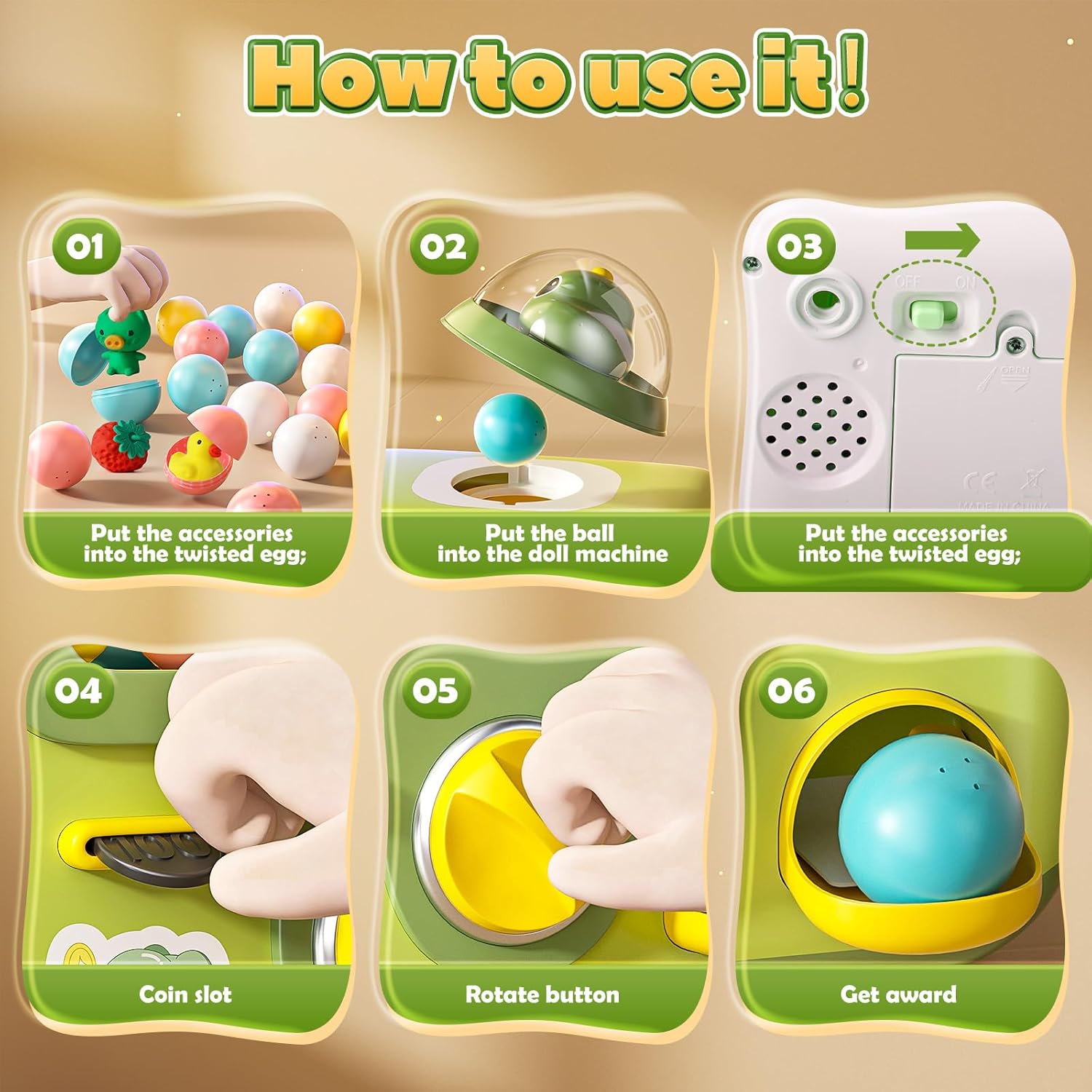 Editor's Pick: This claw machine is made of PC and ABS materials, with a transparent body that clearly displays colorful capsules, adding to the fun. The 60-second challenge mode is perfect for family gatherings or birthday parties, enhancing parent-child interaction and hand-eye coordination. It features music and lights, suitable for children aged 6 and up.