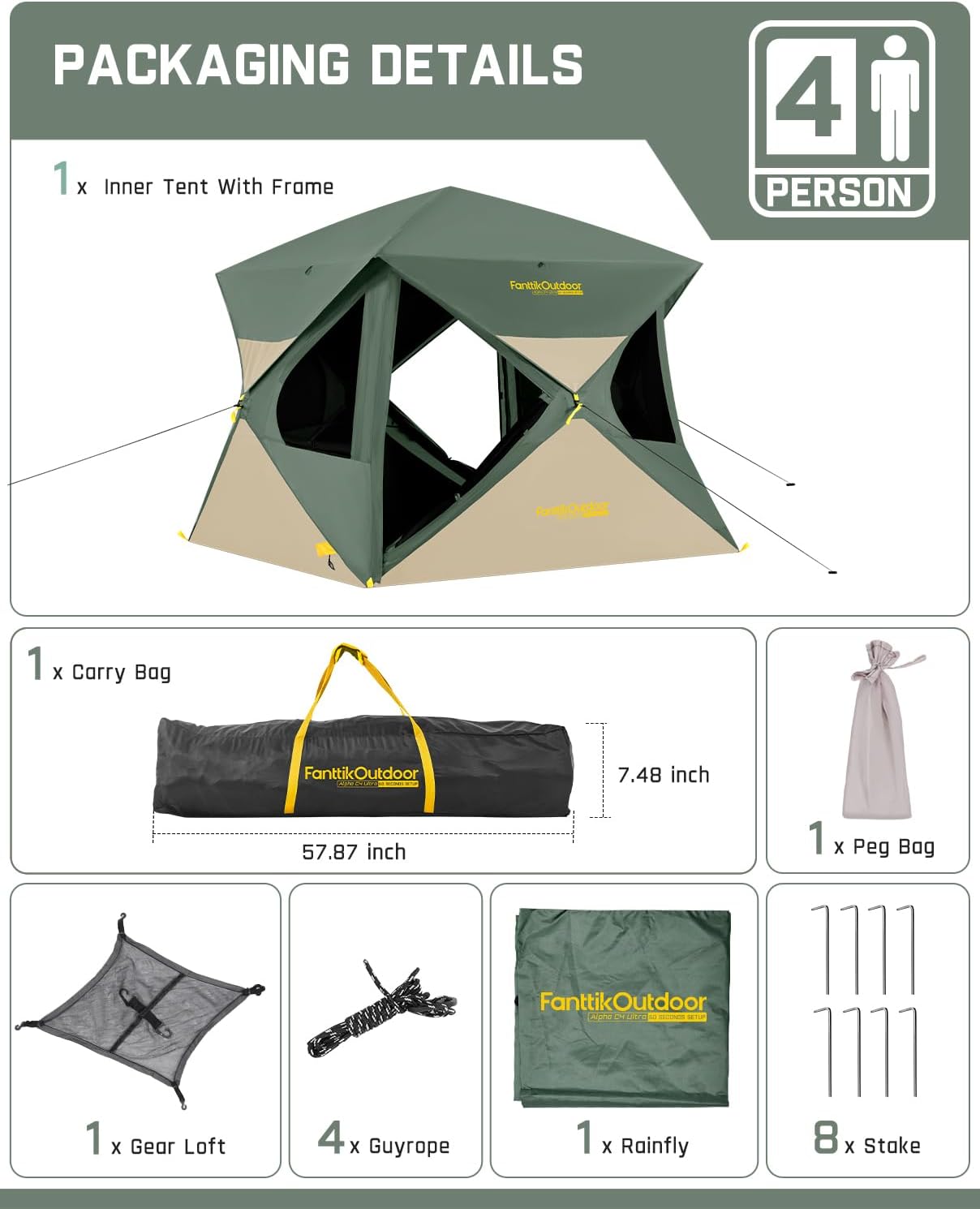 FanttikOutdoor Alpha C4 4-Person Pop Up Windproof Tent