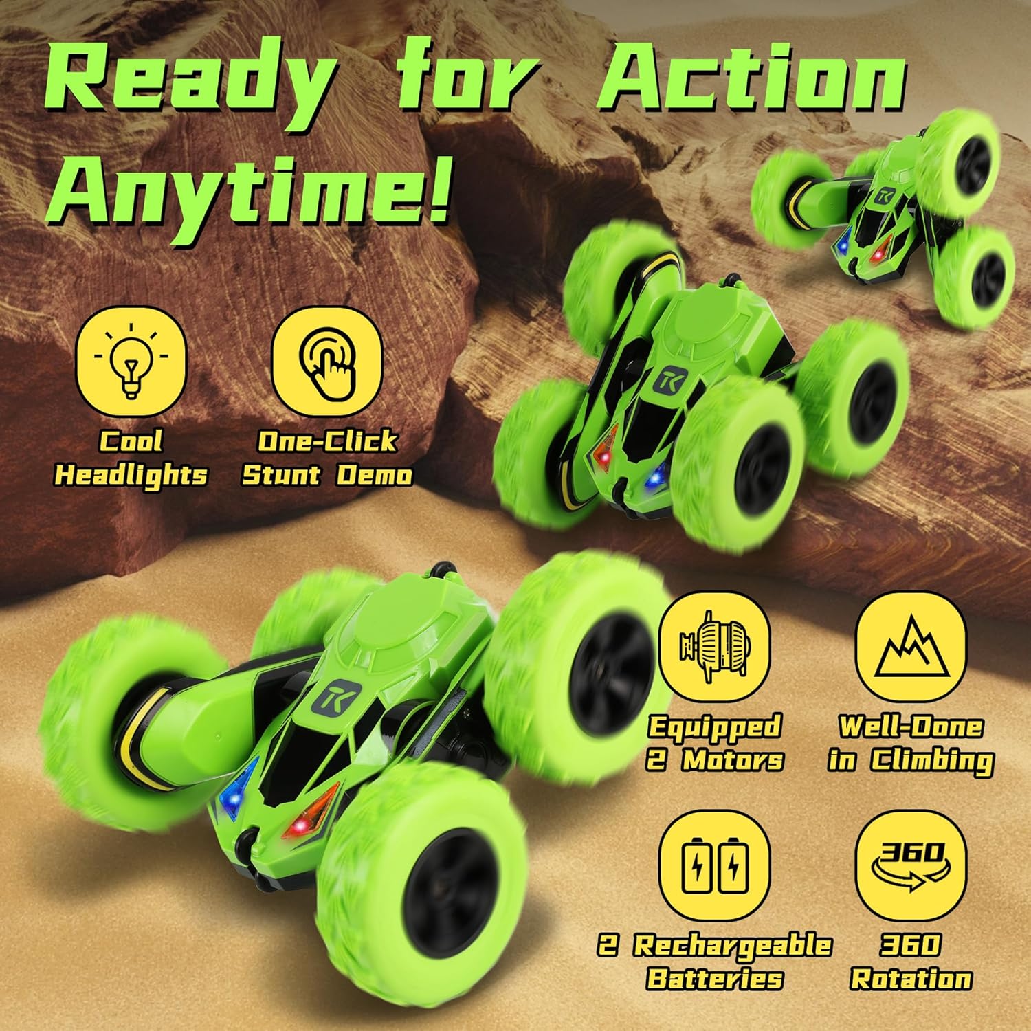 AI Review Summary: ⭐Amazon Rating: 4.5/5 (12,592+ Reviews). Many users report that this RC car is fun to use both indoors and outdoors, with responsive controls and 360-degree flip capabilities, making it perfect for interactive entertainment for the whole family.