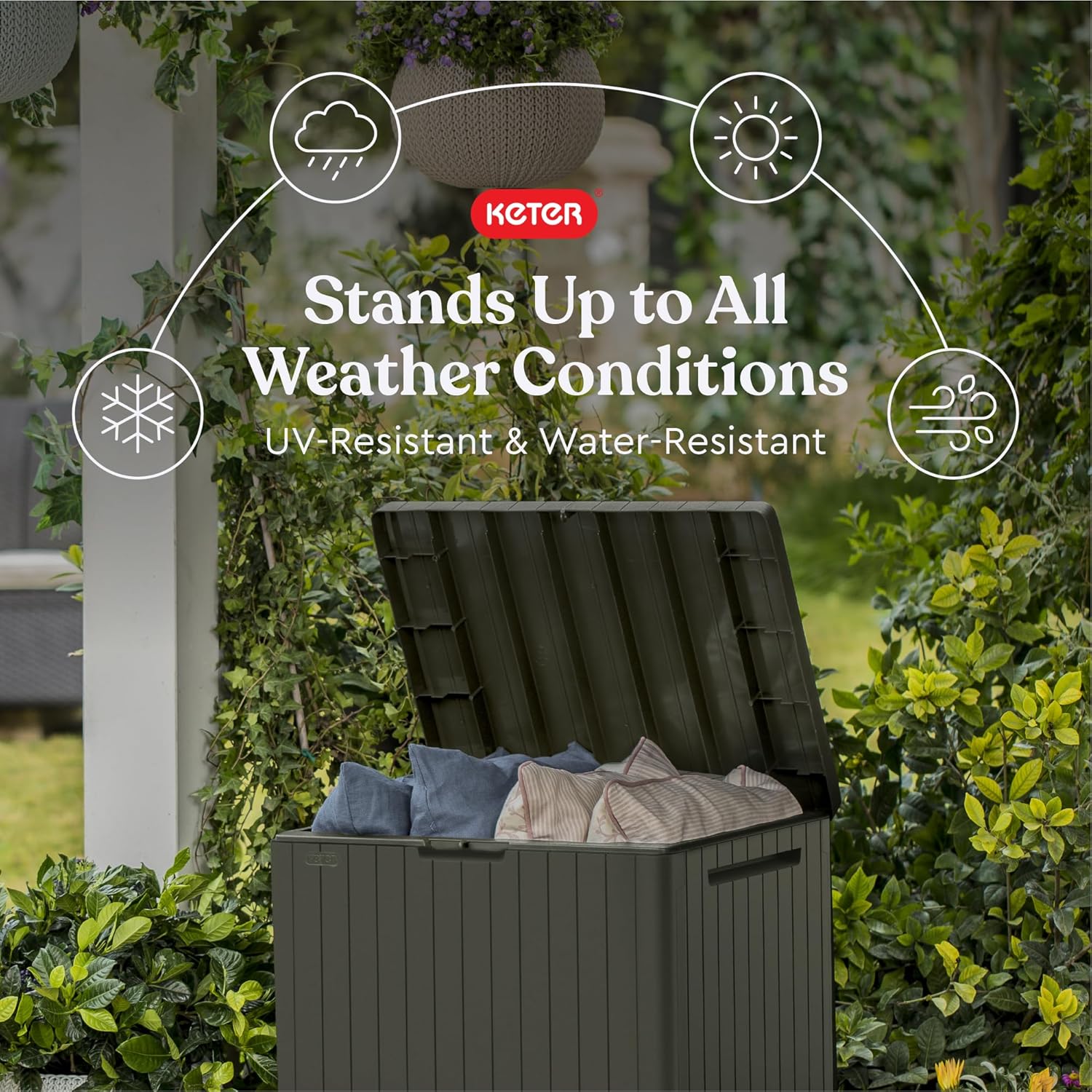 Editor's Pick: This storage box features an all-weather resin construction with durable faux wood texture that won't rot or fade. The compact 30-gallon capacity is perfect for small spaces like balconies and patios, ideal for storing cushions, gardening tools, pool supplies, and more. Assembly is quick and easy with no additional tools required, providing a convenient outdoor storage solution.
