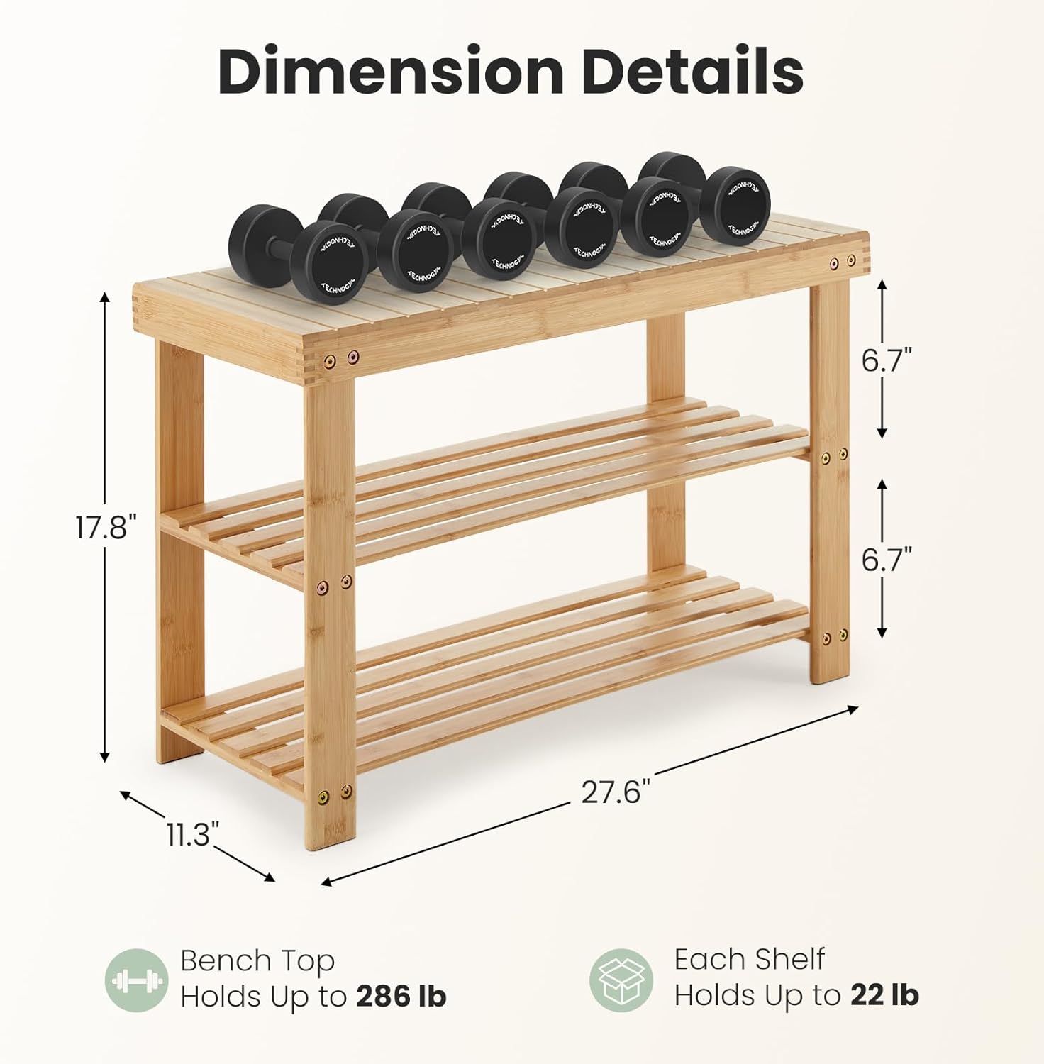 - Amazon now offers DUMOS 27.6-inch Bamboo 3-Tier Shoe Bench, priced at $27.98 (MSRP $44.99).