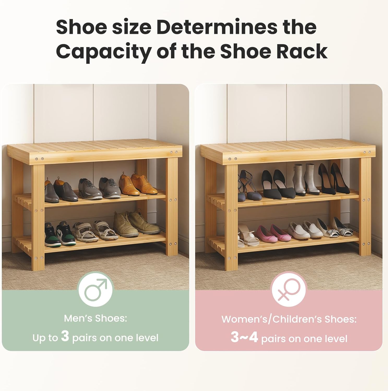 Editor's Pick: This shoe bench is made from 100% premium bamboo with natural bamboo grain finish that adds style to your home decor. The three-tier open design can hold approximately 6 pairs of shoes, with the top shelf supporting up to 286 pounds, functioning as both a seat and storage solution. Its compact size makes it perfect for entryways, bedrooms, or balconies, and it comes with detailed installation instructions and tools for easy assembly.