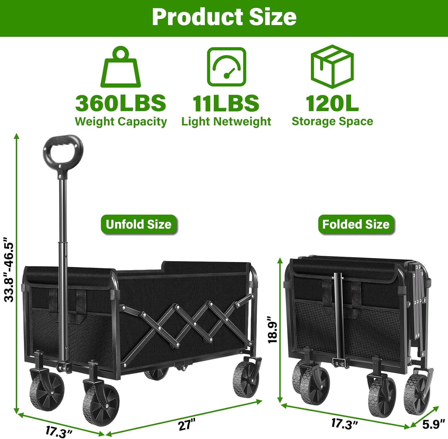FFQ Folding Wagon Cart Black 360LBS