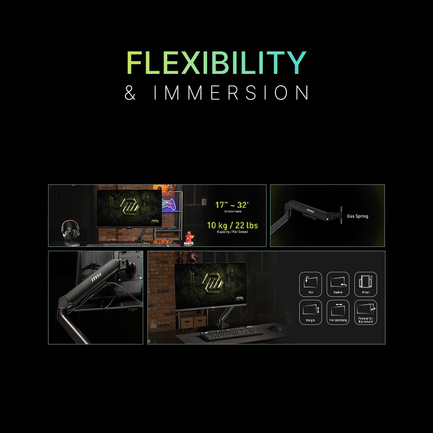 Editor's Pick: This monitor stand features a gas spring design that supports monitors from 17 to 32 inches and up to 22 pounds. It offers two installation methods: clamp-on or grommet mounting, compatible with VESA standards. Equipped with a quick-release VESA plate for easy installation and adjustment. The stand allows for multi-angle adjustments including tilt, swivel, and rotation, helping to create an ergonomic and comfortable working environment.