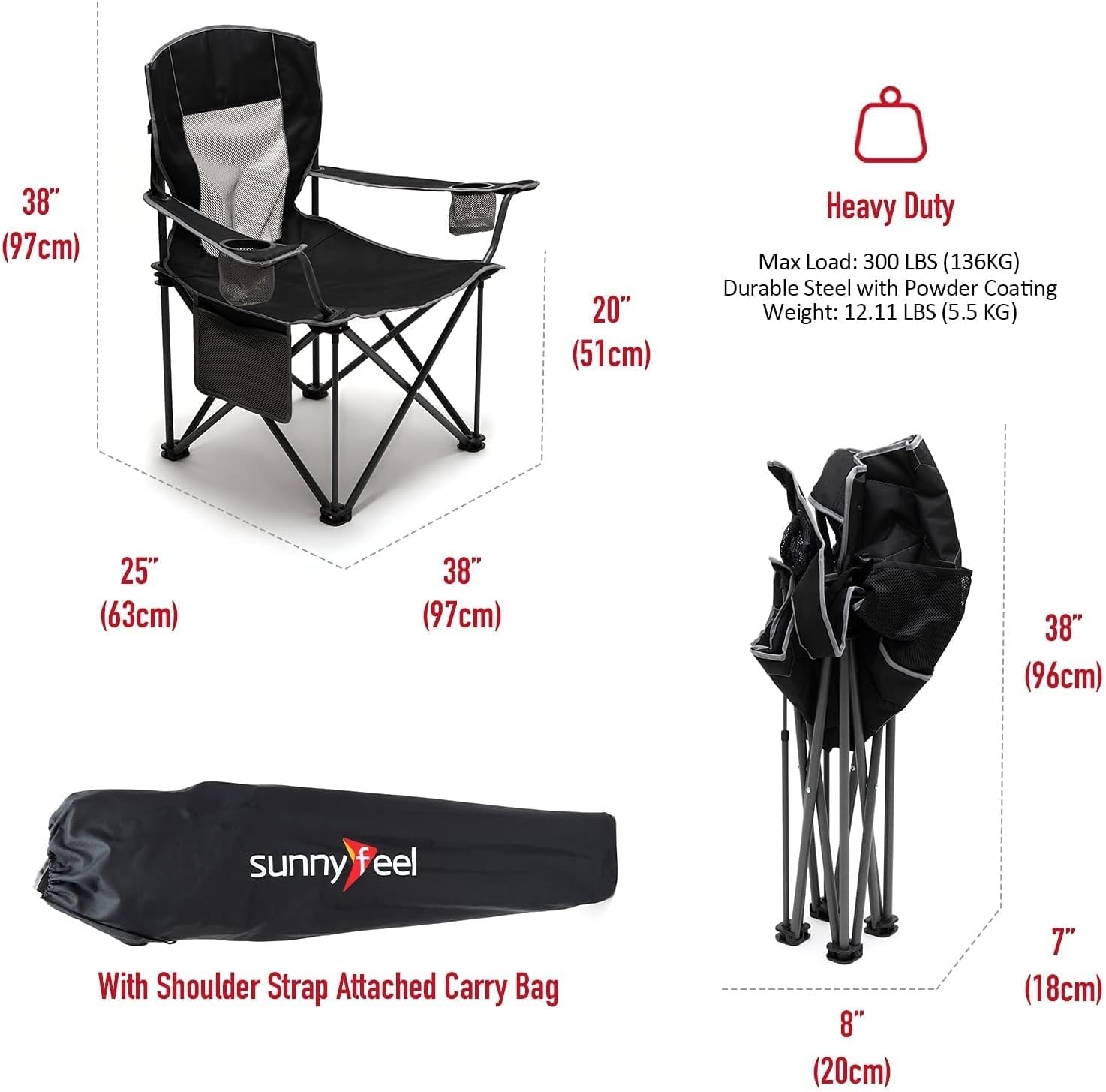 SUNNYFEEL Camping Chair Black 500lbs Capacity