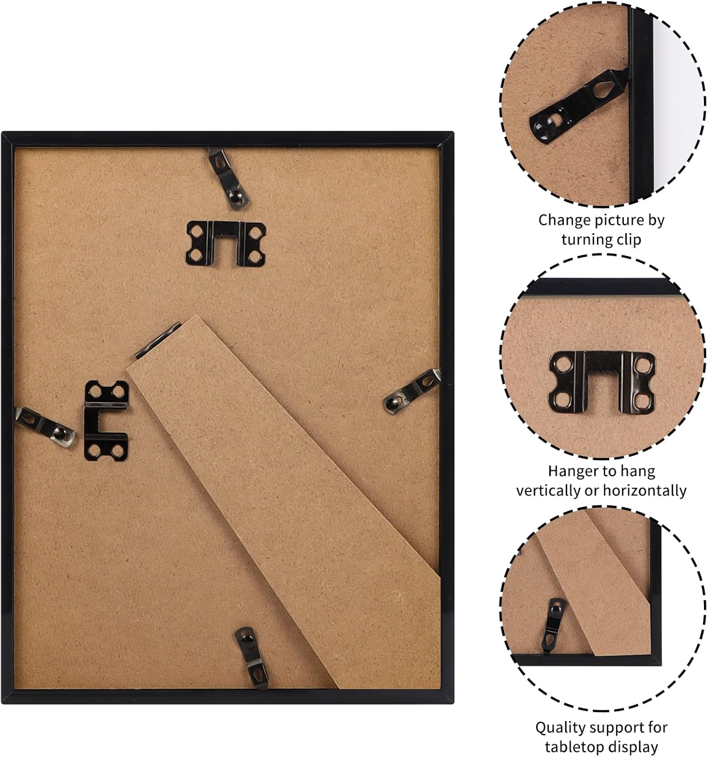 Editor's Pick: This 8x10 inch picture frame features a minimalist black design that easily complements various home decor styles. The lightweight molded plastic construction is sturdy, while the front panel uses acrylic glass, which is safer than traditional glass. The back panel has easy-open clips for quick and secure photo insertion, and it supports both horizontal and vertical display options, perfect for showcasing family portraits, travel photos, or small artwork.