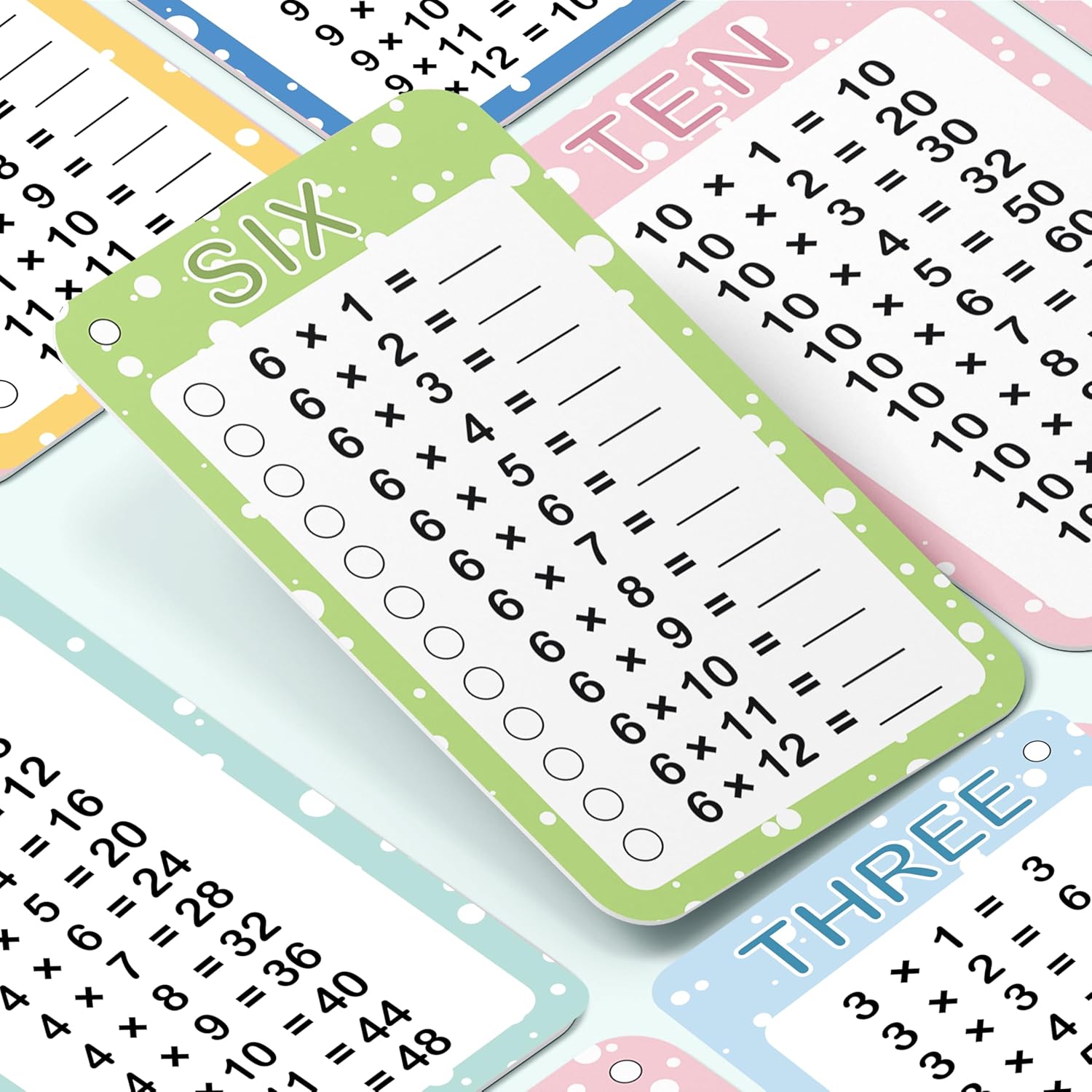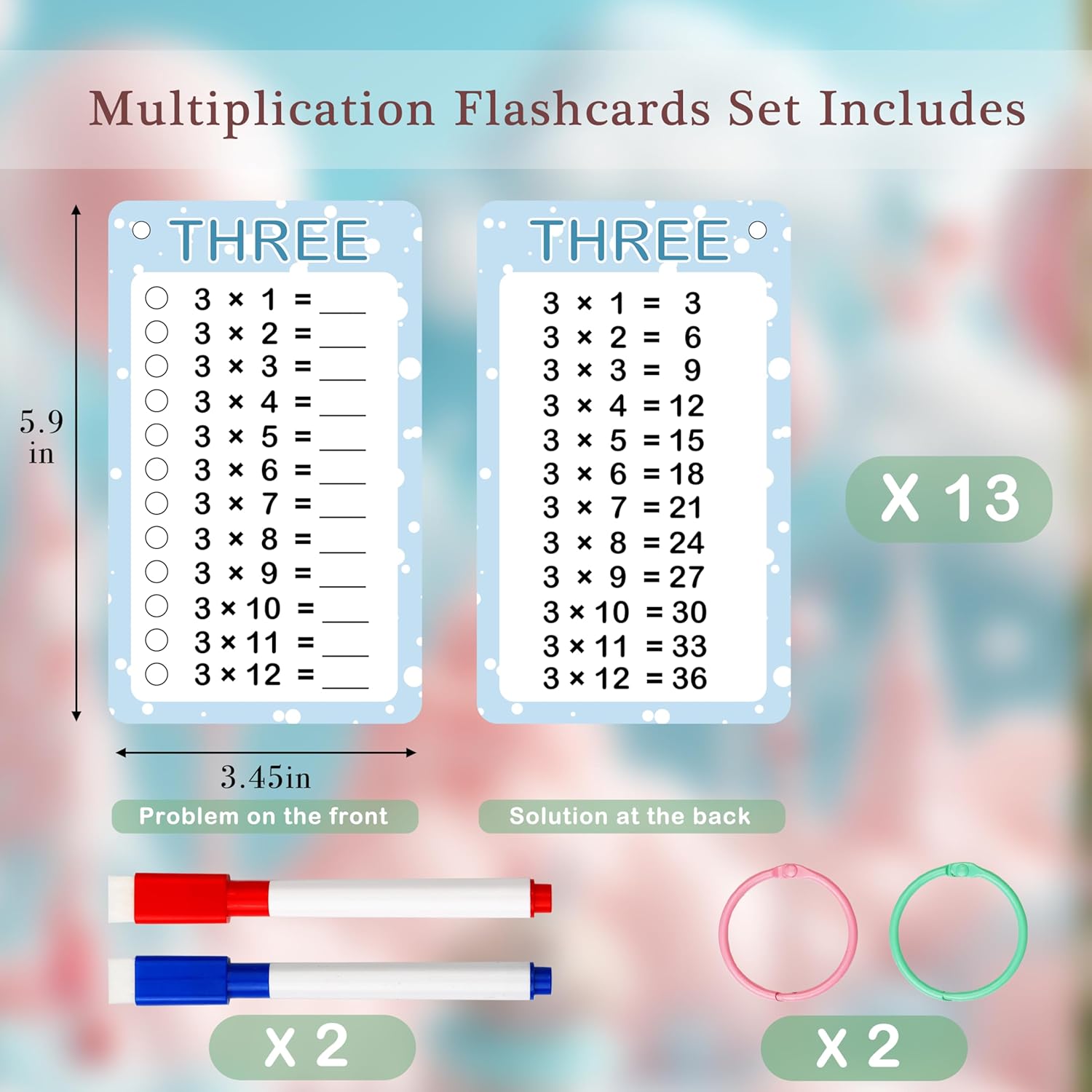 Editor's Pick: This multiplication flashcard set includes 13 cards with multiplication tables from 0-12, complete with a dual-color marker and metal ring. The design emphasizes interactivity and self-learning. The cards feature thick lamination, making them waterproof and durable, with rounded corners for safety to prevent scratches. With questions on the front and answers on the back, plus a scoring feature, children can easily self-test and reinforce their learning. The compact, portable design can be easily attached to a backpack, making it perfect for math practice at home, in the classroom, or while traveling.