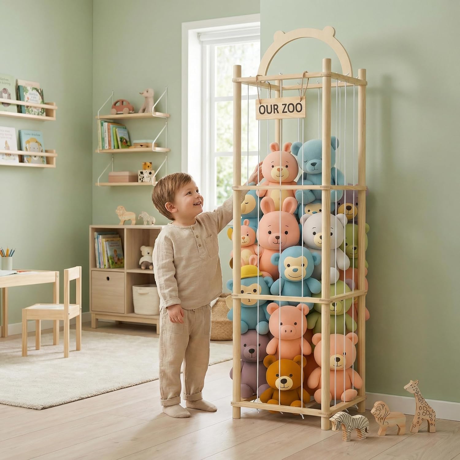 Editor's Pick: This large storage bag comes with 3 animal plushies, specially designed for organizing stuffed toys. It utilizes vertical space, storing many plush toys without taking up floor space, perfect for children's rooms, playrooms, or bedrooms. The open design makes it easy for children to access their toys without dealing with lids or complicated steps. The structure is sturdy and durable, capable of holding large plush toys without sagging or tipping over, helping children develop organizational habits and keep their rooms neat and tidy.