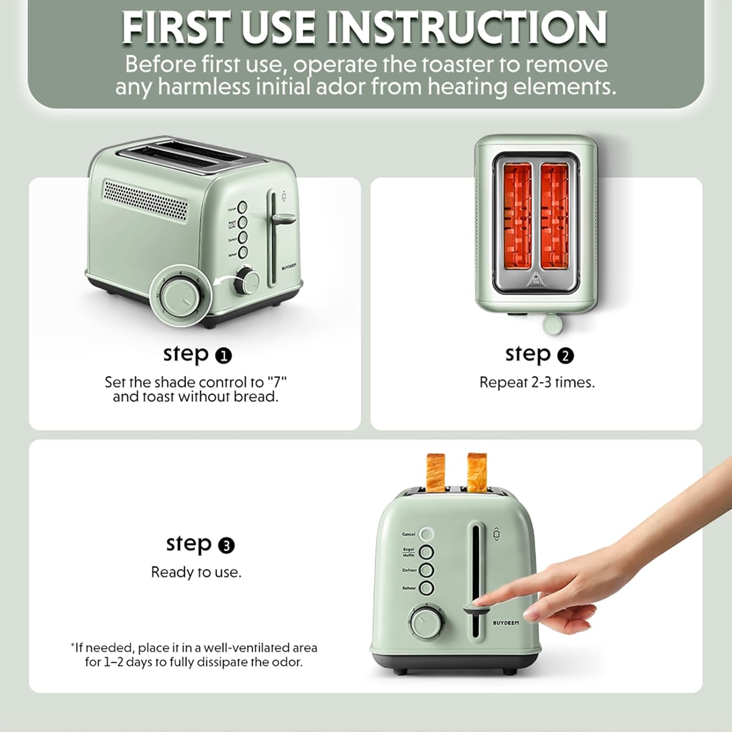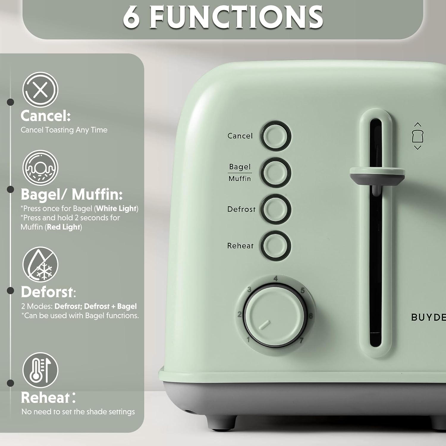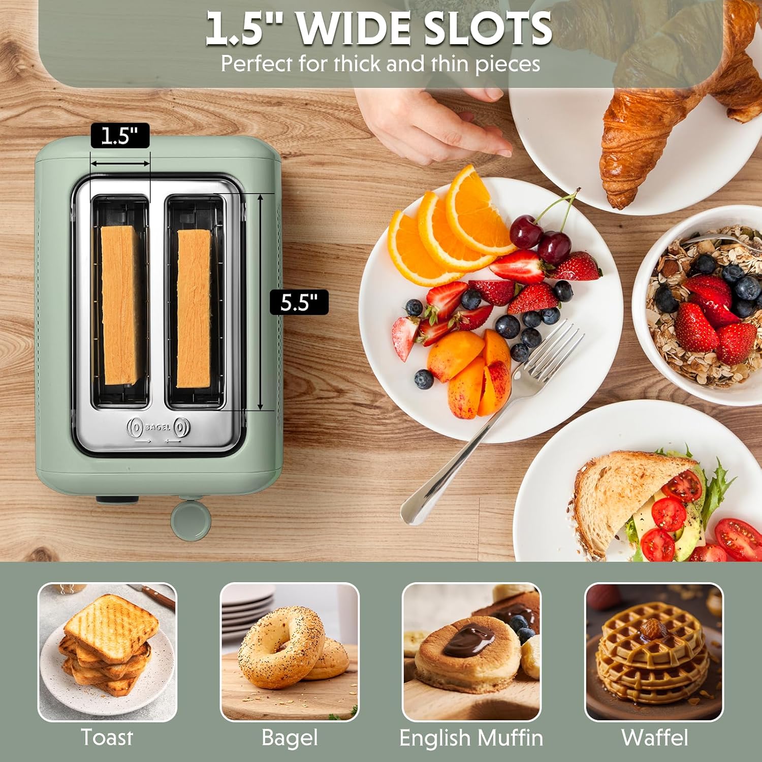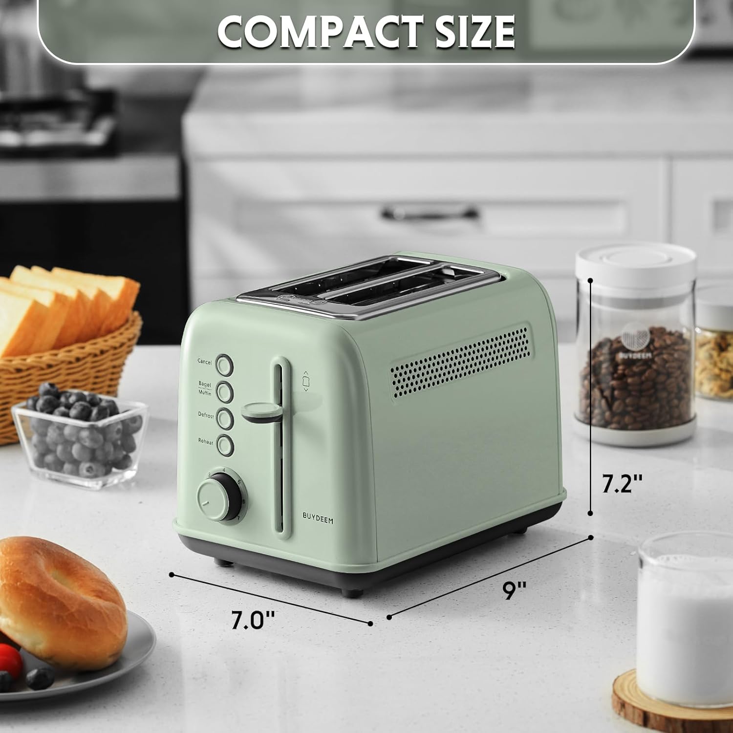 BUYDEEM DT620 Toaster 2-Slice Extra Wide Slots Green
