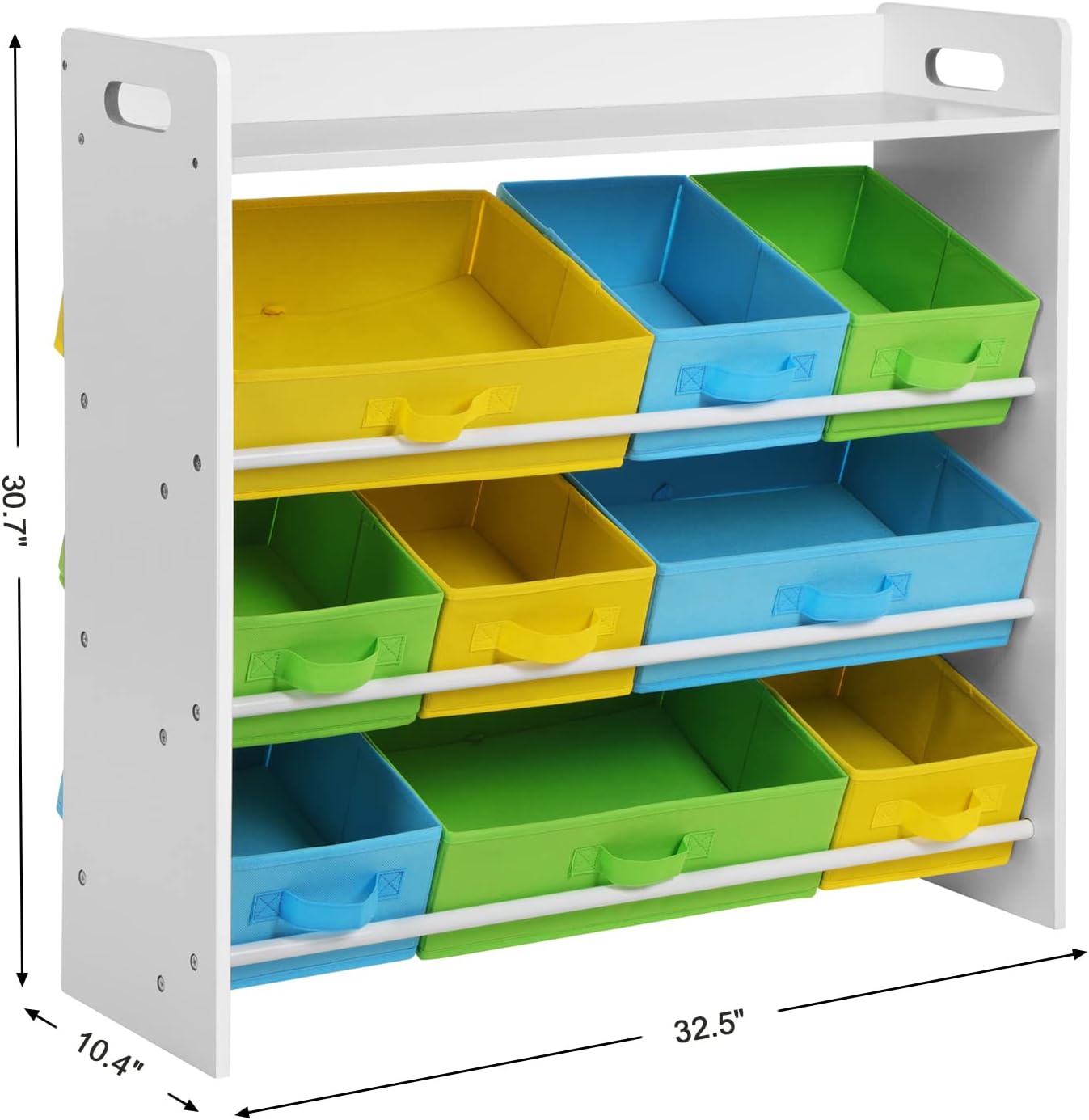 Editor's Pick: This children's toy storage organizer features a top bookshelf and 9 removable non-woven fabric storage bins, making it easy to organize books, toys, and stationery. Support bars at the back prevent the bins from accidentally sliding out, while the top shelf is perfect for displaying books or decorative items. The colorful design adds a decorative element to children's spaces, and it comes with an anti-tip strap that can be fixed to the wall for safety.