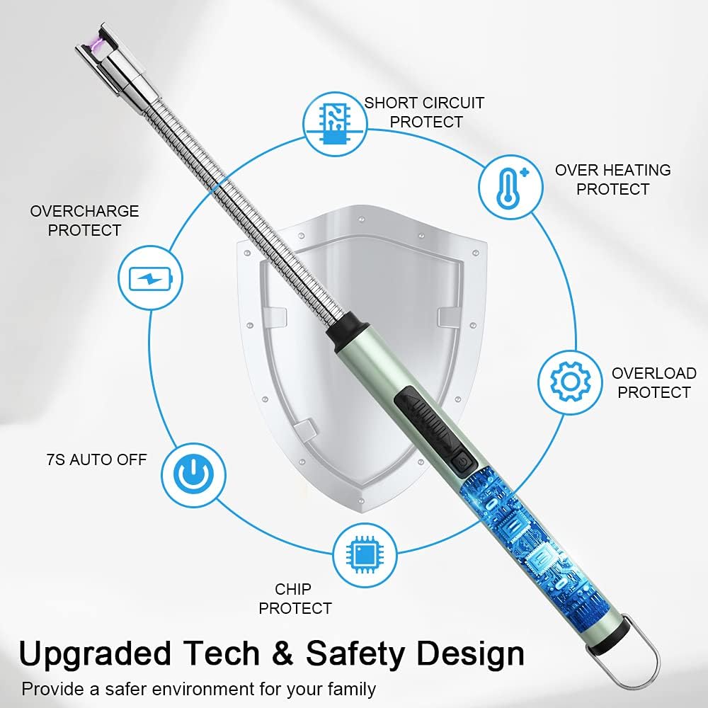 Editor's Pick: This arc lighter uses flameless plasma arc technology with windproof and moisture-resistant features, suitable for candles, BBQ, fireworks, and more. The 360° rotatable flexible neck allows for easy multi-angle ignition. It includes a child safety lock and a 7-second auto shut-off for safety and ease of use, with a rechargeable USB design that reduces disposable waste.