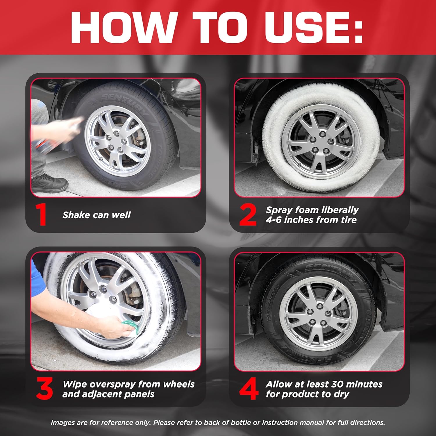 Editor's Pick: This tire foam spray features a specially formulated thick solution that clings to tire surfaces, effectively dissolving and removing dirt, road grime, and mud. Its all-in-one design cleans while adding shine and protection with silicone oil components, giving tires a wet, glossy finish. The formula has self-healing properties that automatically fill in small scratches to maintain shine, and it's weather and wash resistant, with effects lasting for several weeks.