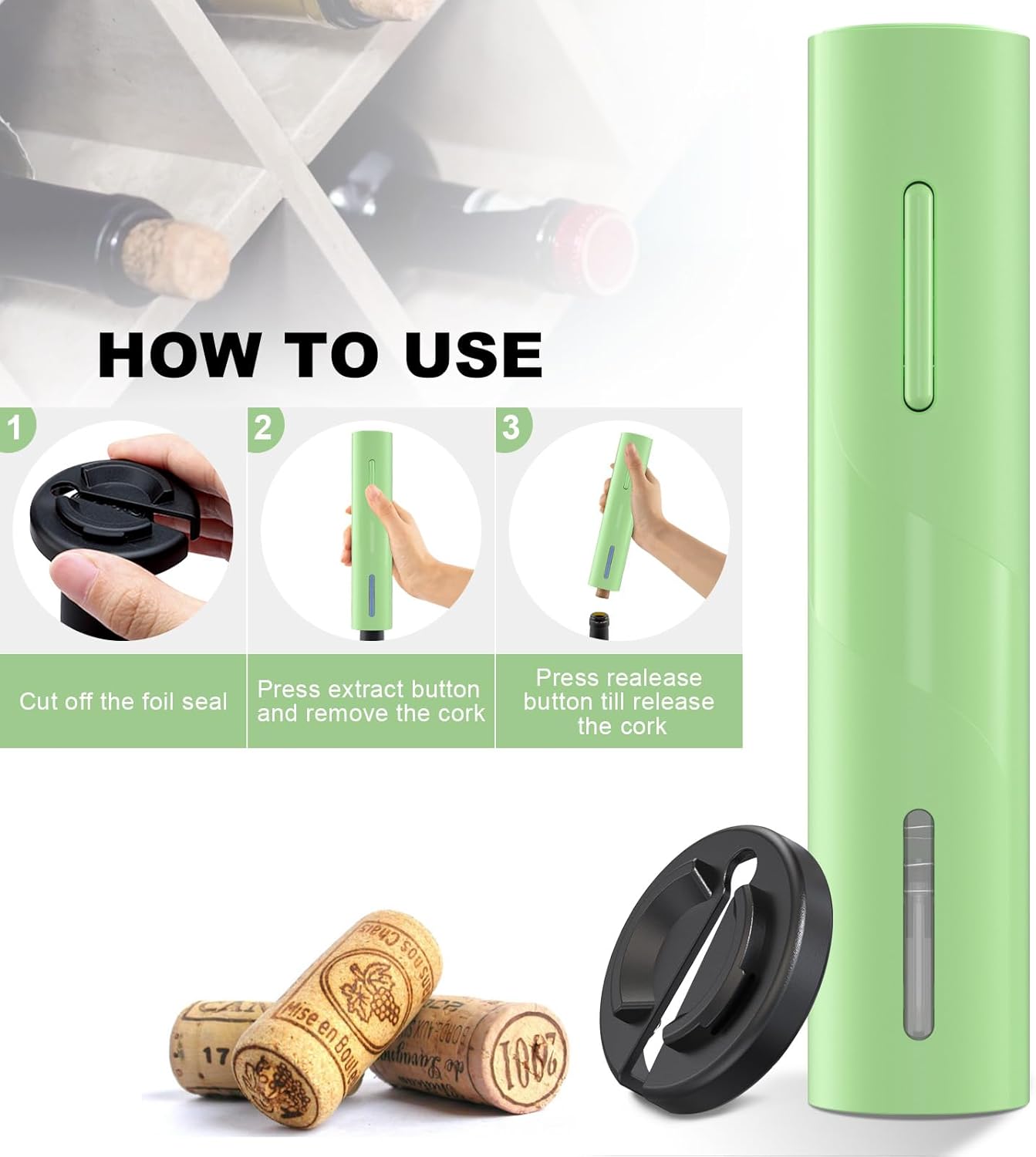 COKUNST Battery Wine Opener Green