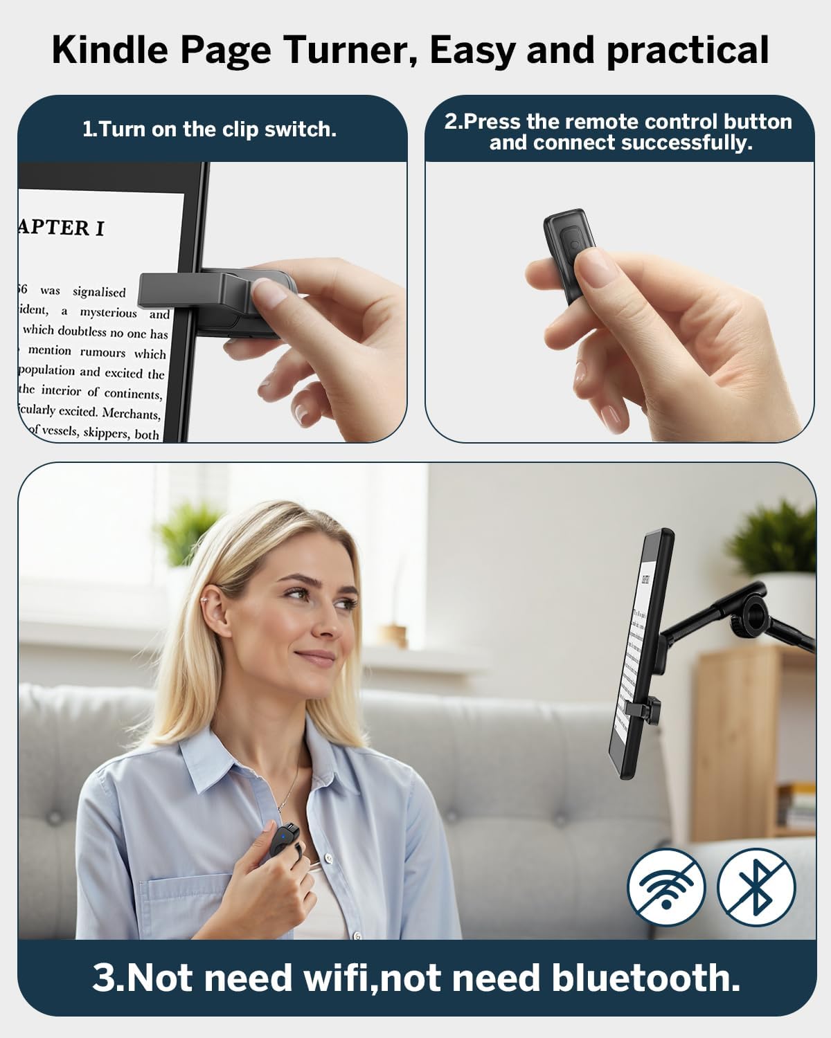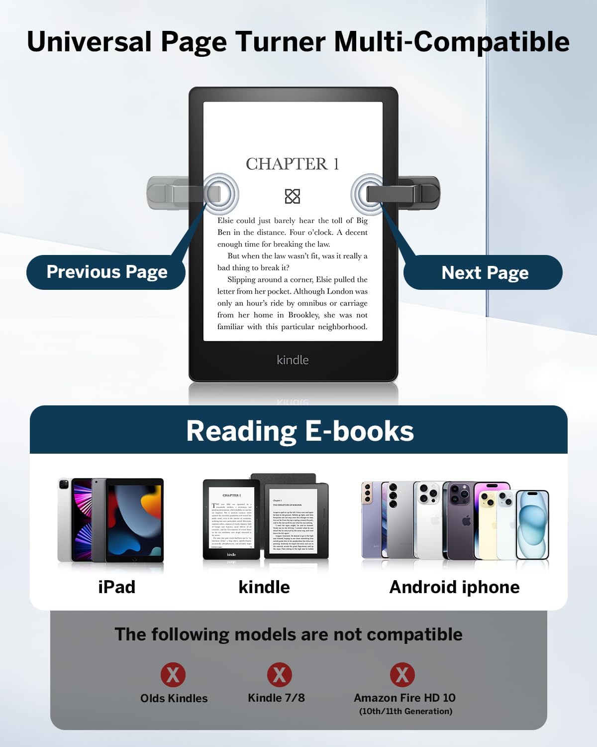 AI Review Summary: ⭐Amazon Rating: 4.5/5 (1,458+ Reviews). Users generally report that this page turner is comfortable to wear, compatible with e-readers with cases, and offers convenient connection, making nighttime or lazy reading sessions more comfortable.