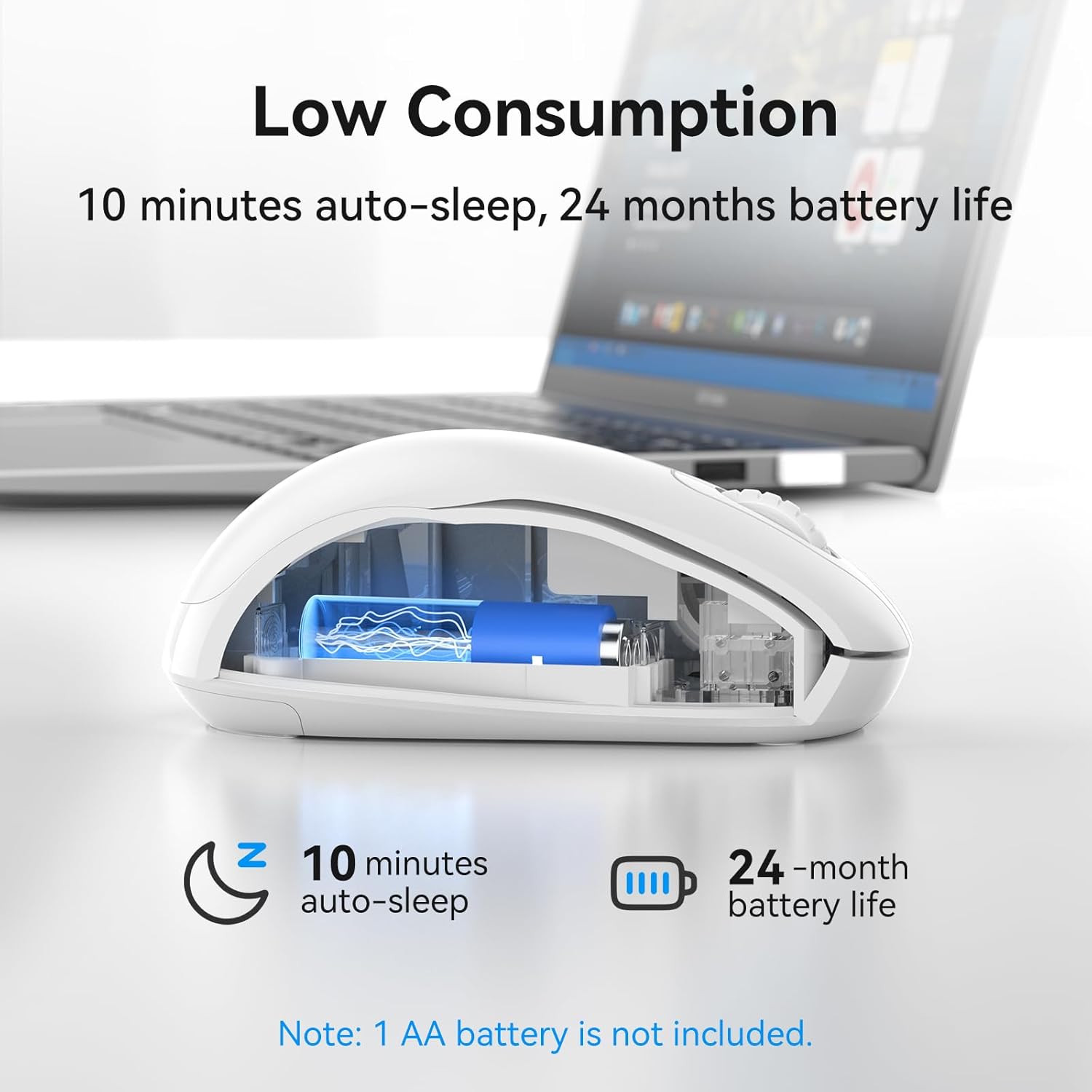 Editor's Pick: This wireless mouse features silent clicking buttons, perfect for quiet environments like offices and libraries. Its ergonomic design provides comfortable grip for small to medium-sized hands, helping reduce wrist fatigue during extended use. It supports 2.4GHz wireless connection with plug-and-play functionality, and includes a physical DPI switch button that lets you quickly adjust between 800/1200/1600 sensitivity levels. The built-in smart sleep mode allows a single AA battery to last up to 12 months.