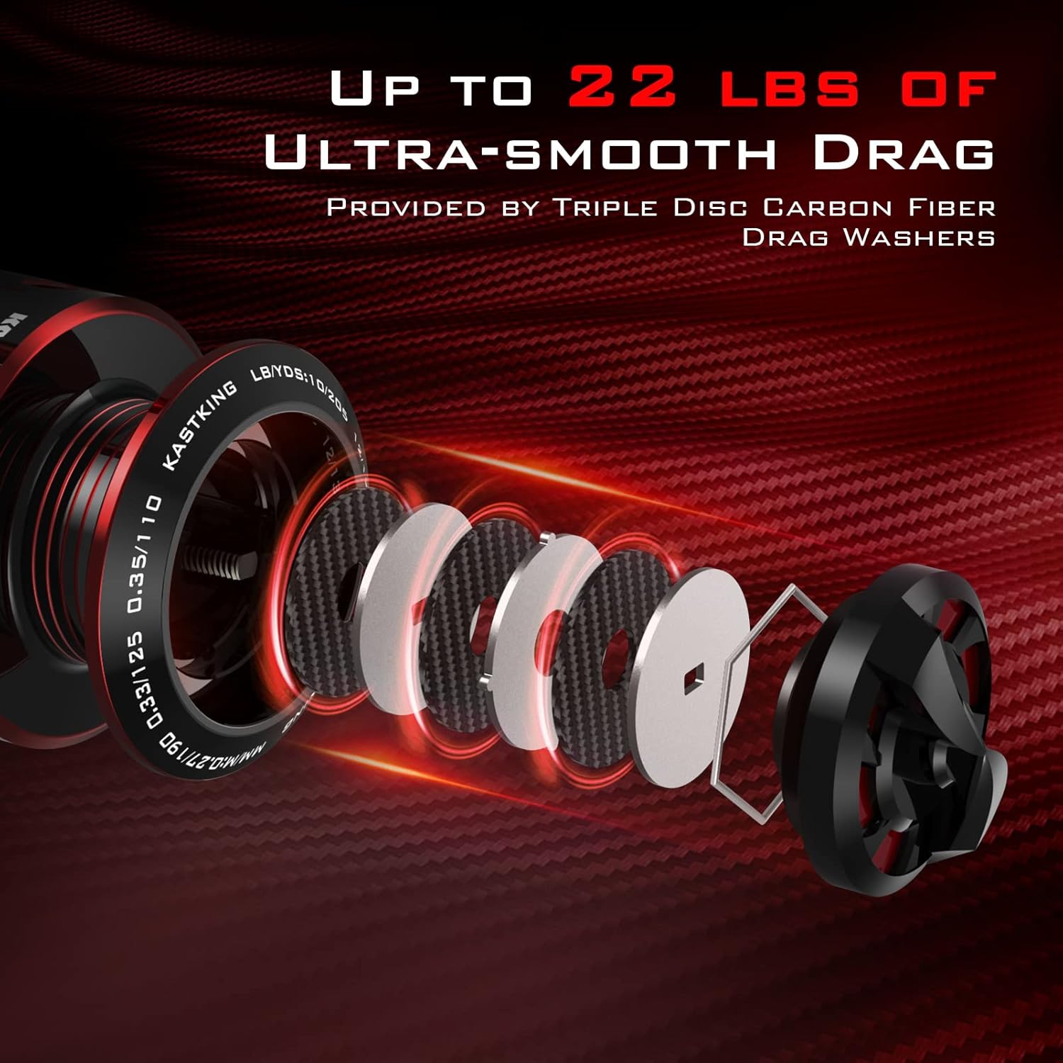 Editor's Pick: This fishing reel features a lightweight, rust-resistant graphite frame and rotor, suitable for smooth all-weather operation. It comes with 7+1 stainless steel ball bearings and an anti-reverse bearing, providing a smooth and stable line retrieval experience. The asymmetric rotor design enhances rotational balance and operational fluidity. The three-layer carbon fiber drag system delivers up to 22 pounds of stopping power, paired with high-speed gear ratio, effectively handling both freshwater and saltwater fishing scenarios.
