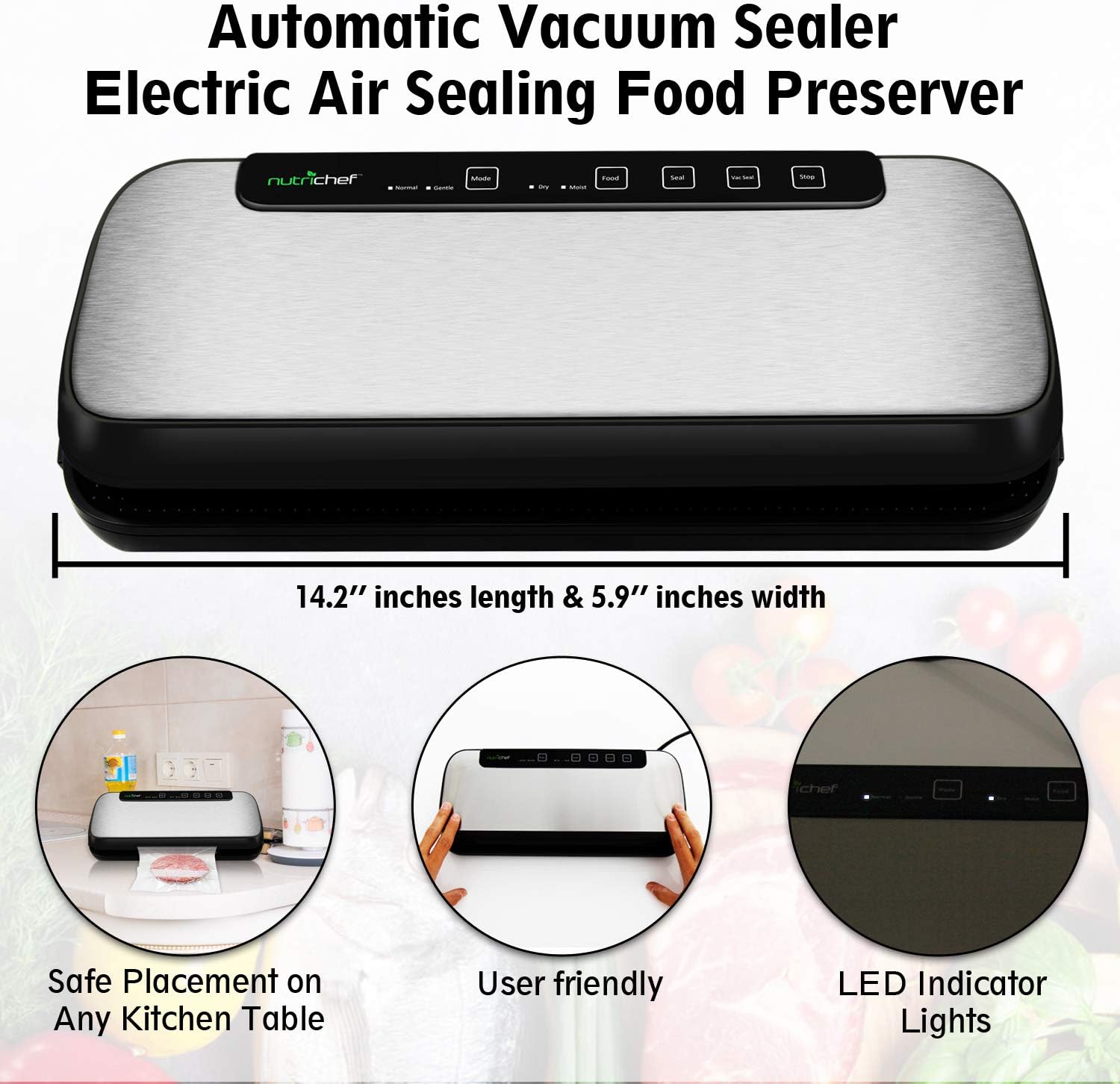 NutriChef Stainless Steel Vacuum Sealer Machine Shop Now