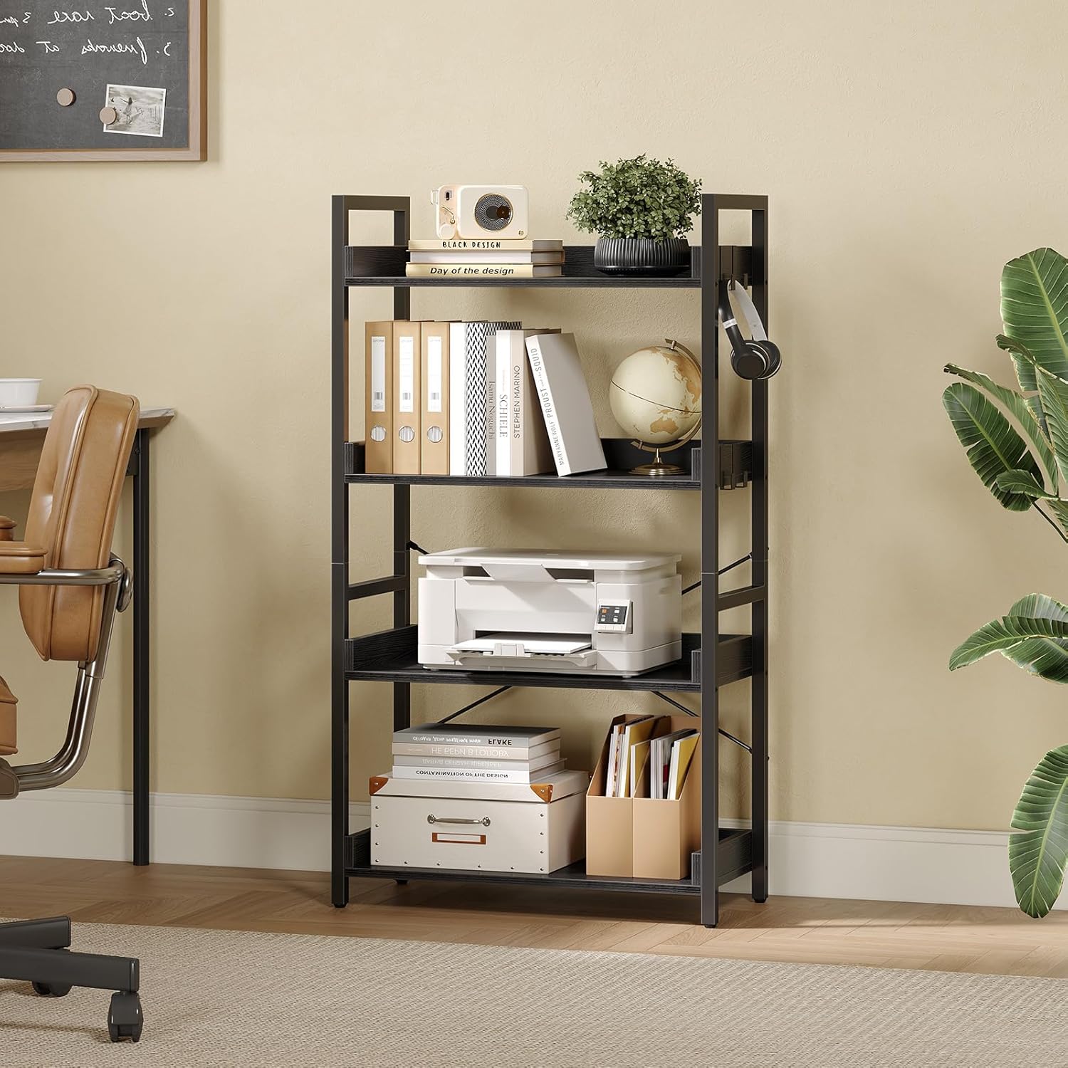Rolanstar 4-Tier Bookshelf Black Industrial