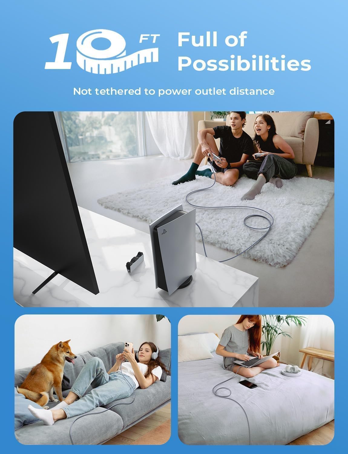 AI Review Summary: ⭐Amazon Rating: 4.5/5 (4,266+ Reviews). Users generally report that this USB-C cable has solid construction, the 10-foot length is convenient, and the adapter is very practical. Reviews on charging speed and durability are mixed.