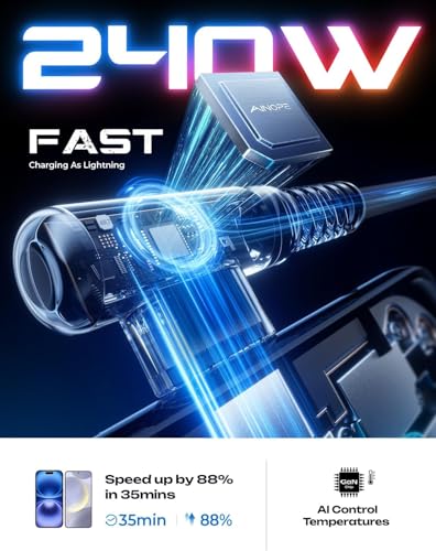 Editor's Pick: This USB-C fast charging cable supports up to 240W power and comes with a USB-A adapter for three-in-one charging. The right-angle design is ergonomic, making it more comfortable to hold while gaming or watching videos, while also preventing cable damage from bending. A built-in smart chip identifies the device and adjusts voltage and current, automatically switching to trickle charging at 80% to protect battery health. The braided nylon material has passed over 40,000 bend tests, and the 10-foot length, along with a Velcro strap, makes it suitable for various charging scenarios in the bedroom, office, or car.