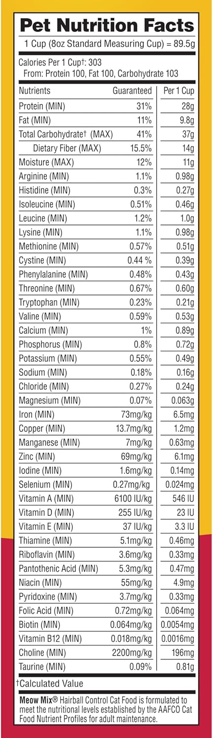- Amazon now offers Meow Mix Adult Cat Hairball Control Dry Cat Food, 6.3 lbs, for $5.41 (regular price $9.84). Clip the '40% Off Coupon' to activate the offer and check out via Subscribe & Save. May be available for select users only.