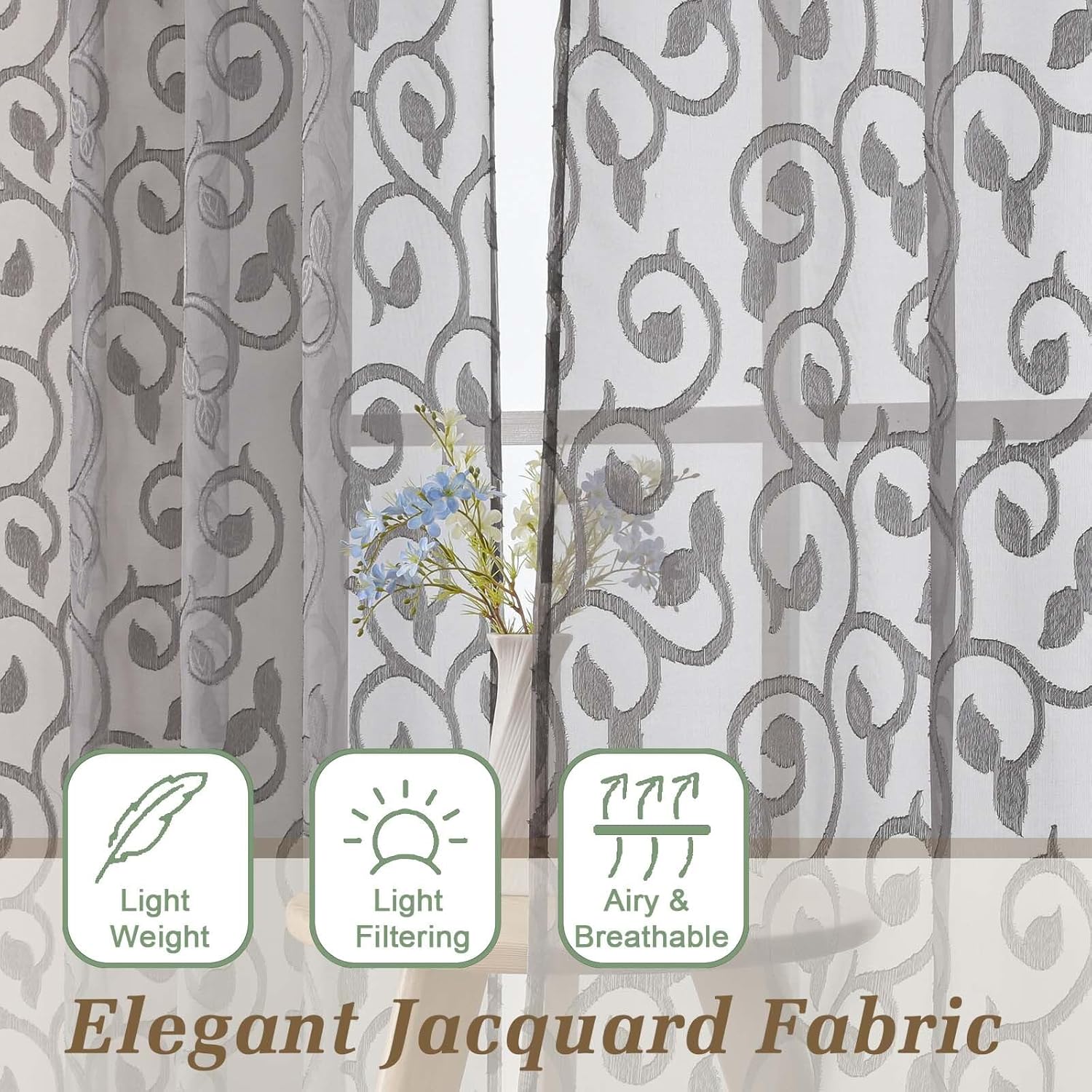 Editor's Pick: These sheer curtains are made of 100% polyester fabric that is lightweight, soft, and breathable. The unique laser-cut geometric pattern creates a striking 3D texture on the charcoal gray panels, adding a modern luxury feel to any room. The curtains provide soft light filtering capabilities, effectively softening harsh light while maintaining privacy indoors. The dual rod pocket design makes hanging and sliding easy, suitable for bedrooms, living rooms, and various other spaces, seamlessly integrating into modern or farmhouse style decor.