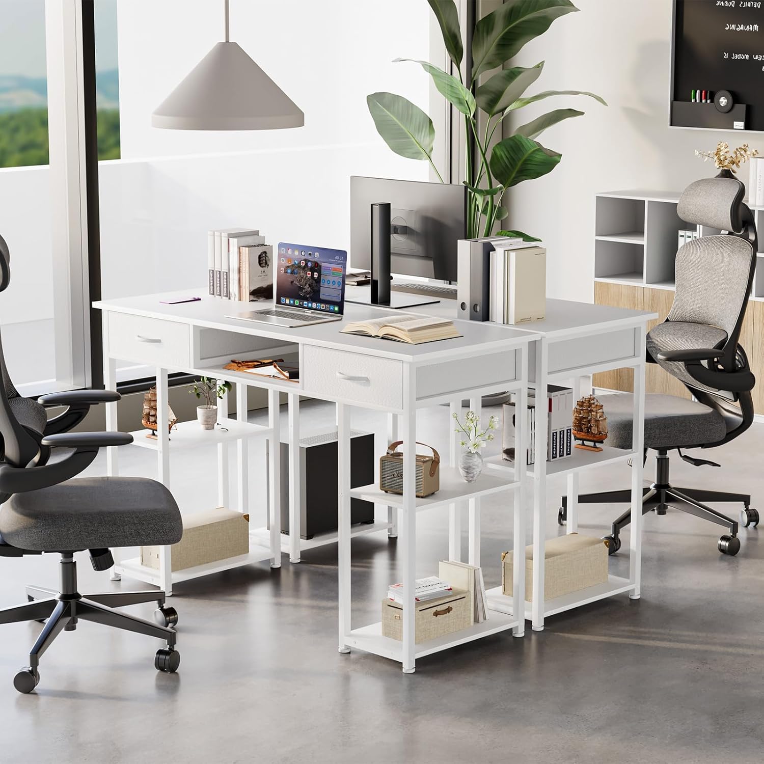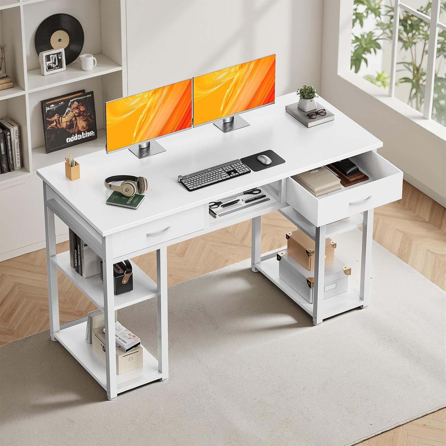 • Amazon now offers DUMOS 48-inch White Computer Desk with Drawers, currently priced at $53.99 (MSRP $79.99).