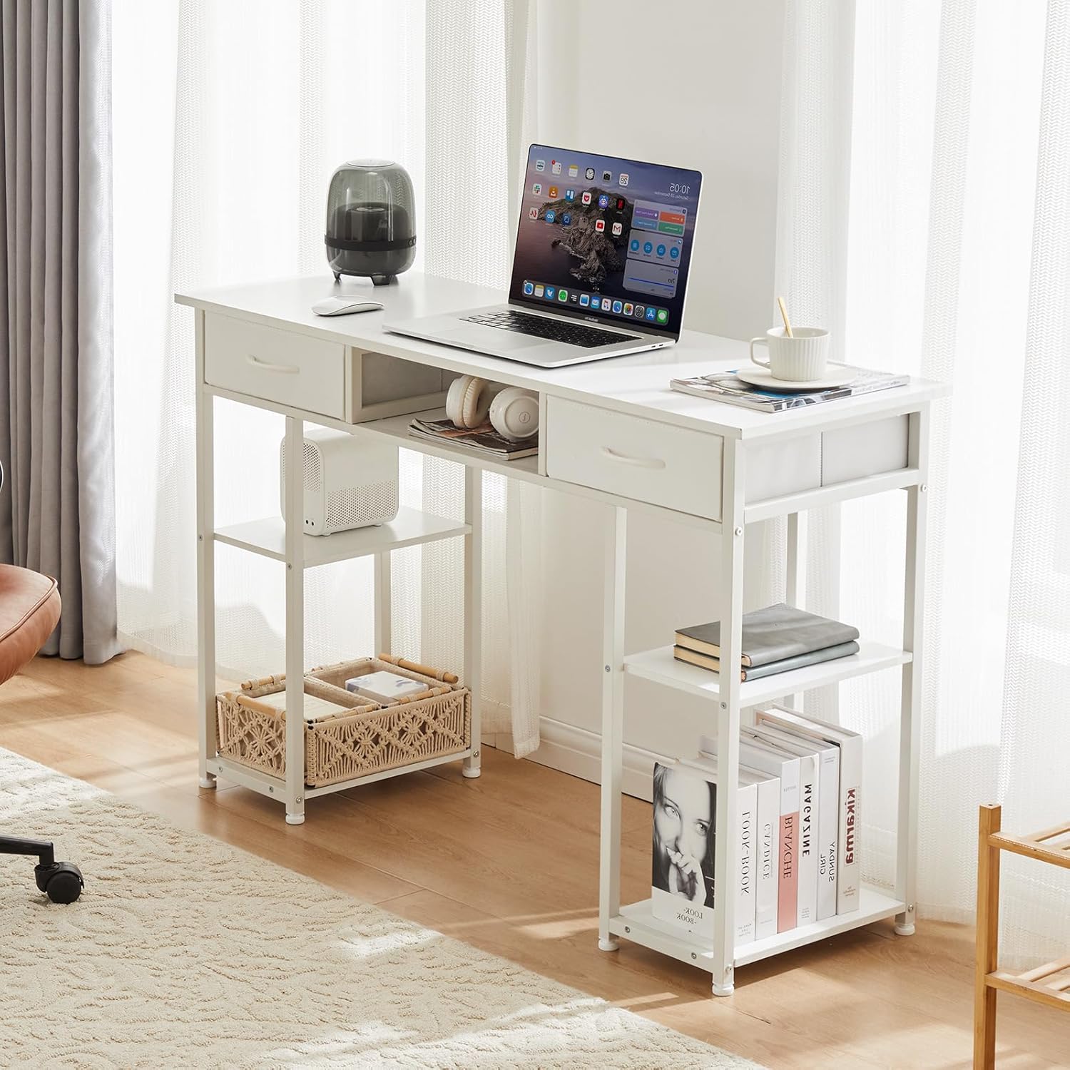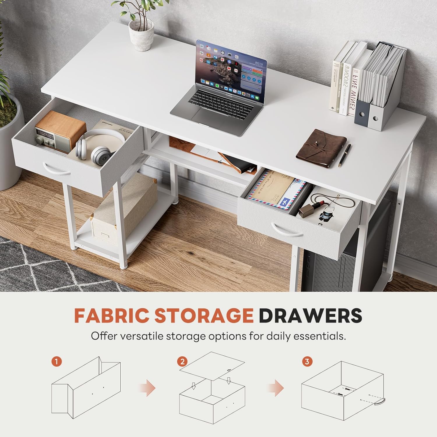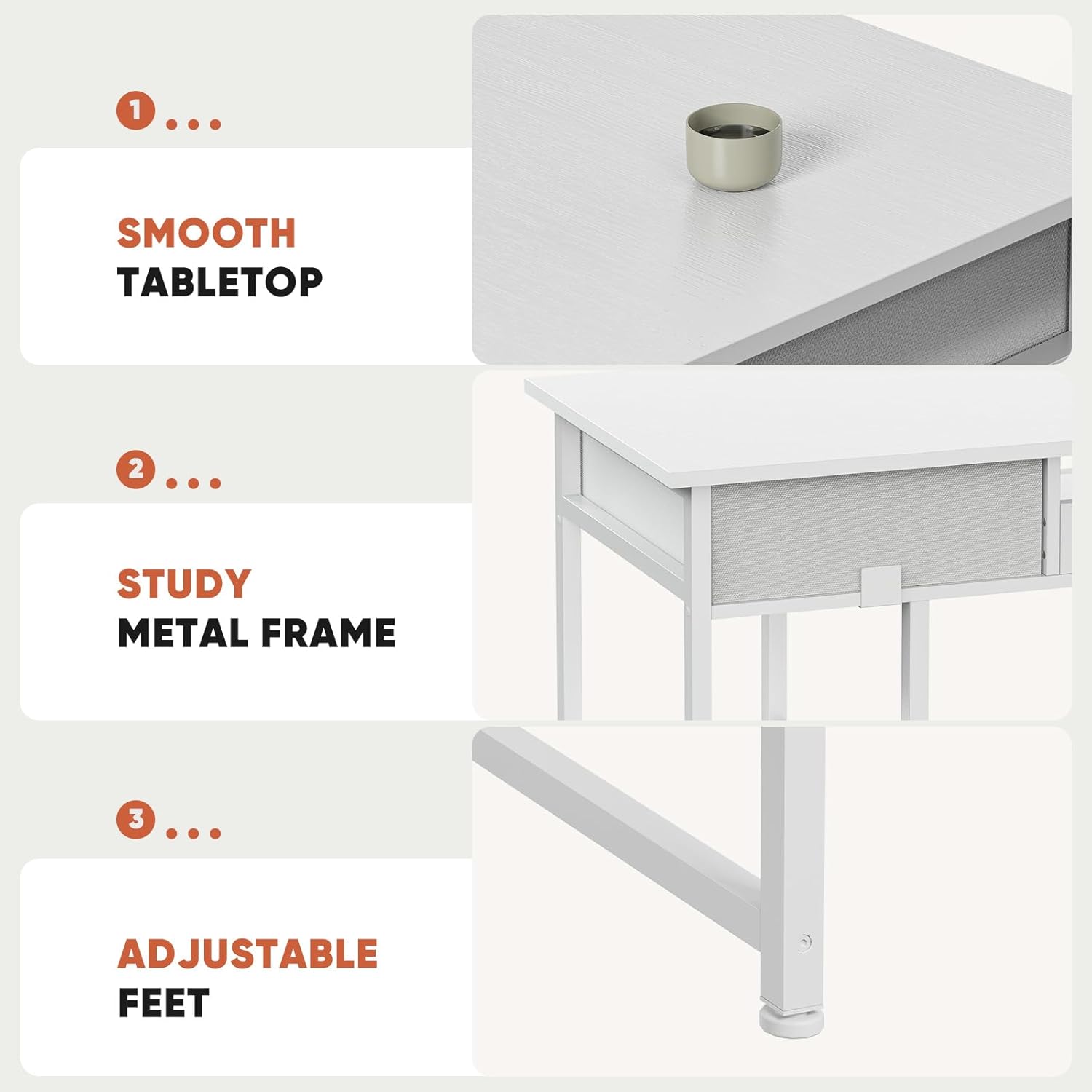 Editor's Pick: This computer desk features 2 fabric drawers and a storage shelf, perfect for organizing books, files, and everyday items. The metal frame combined with high-density MDF board provides a stable structure, while adjustable non-slip feet adapt to uneven floors. Its clean lines and modern style make it suitable for various spaces including living rooms, bedrooms, or dorms, ideal for work, study, or creative projects.