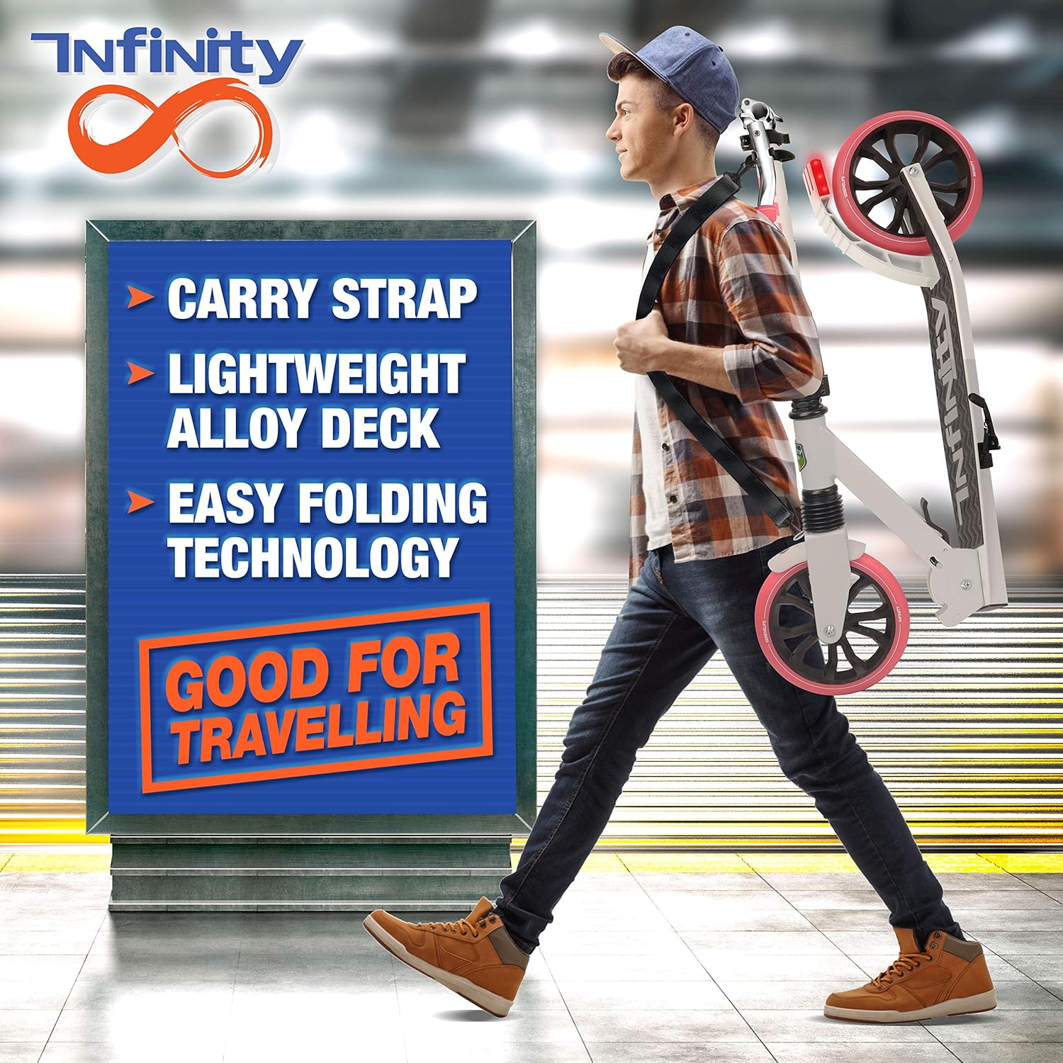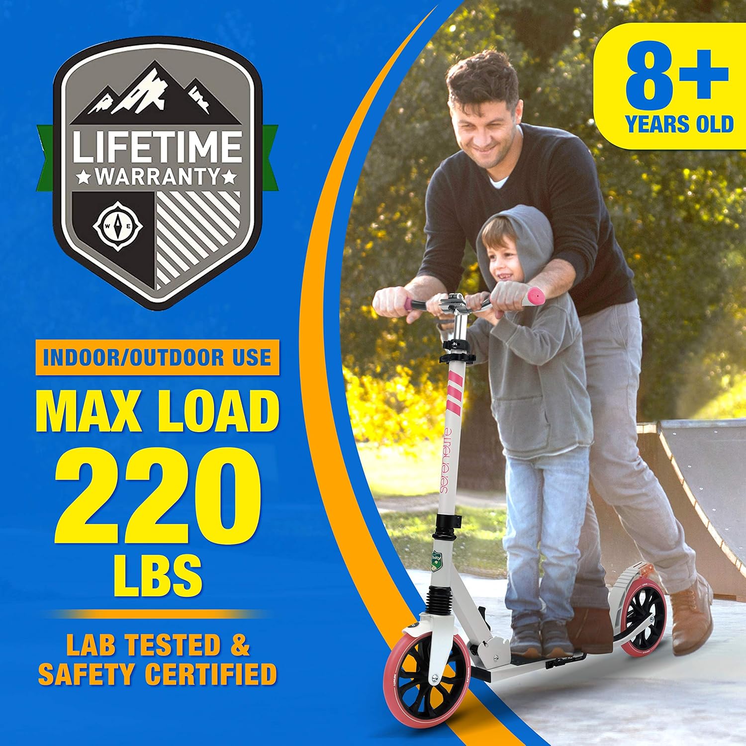 Editor's Pick: This scooter features a lightweight foldable design for easy carrying and storage. The T-shaped handlebar offers three height adjustment levels, making it suitable for teenagers and adults of different heights. The durable alloy frame can support up to 220 pounds, and it comes equipped with high-impact wheels and ABEC-7 bearings for a smooth riding experience. The steel rear braking system enhances safety, making it suitable for both indoor and outdoor use.