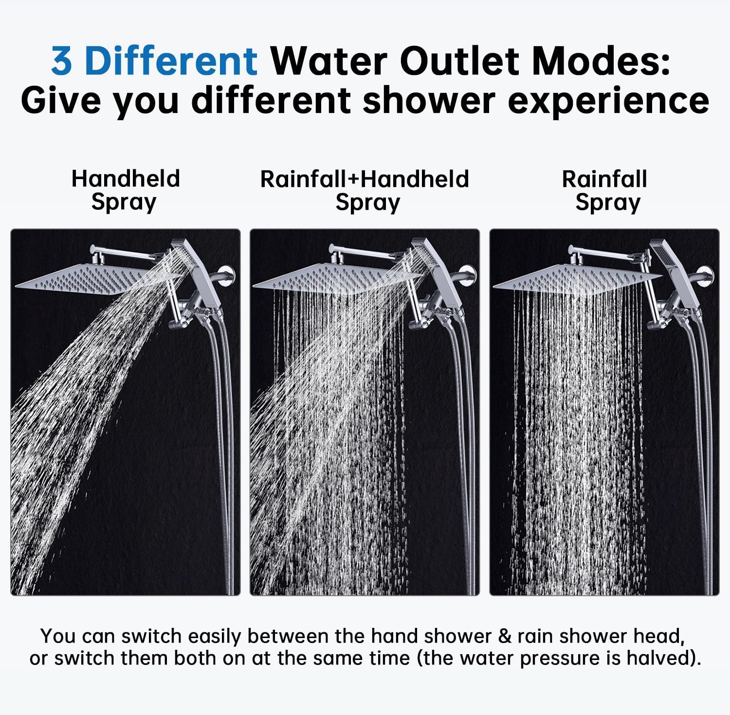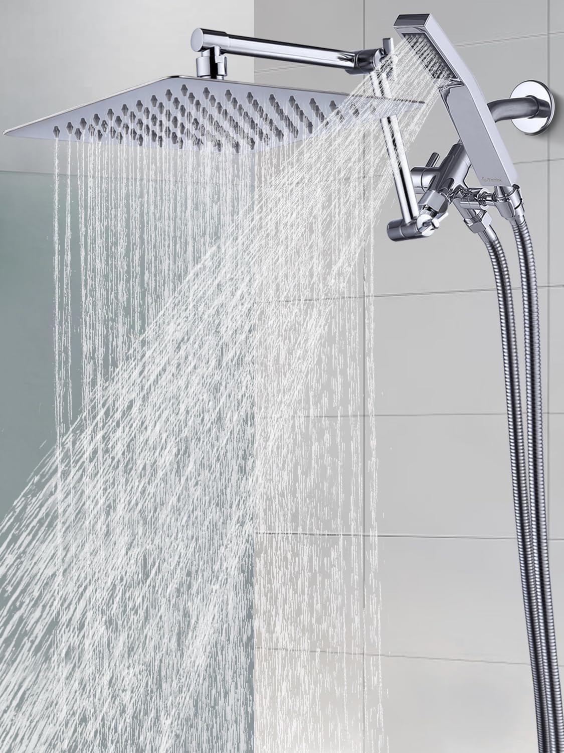 Editor's Pick: This shower combination includes a 10-inch rainfall showerhead and a handheld shower head, both made of all-metal construction for durability. The overhead shower provides a luxurious rain-like water flow, while the handheld unit offers convenient rinsing. It features an adjustable height extension arm with patented locking joints for easy angle adjustment. The 3-way diverter valve allows switching between the overhead shower, handheld shower, or both simultaneously, paired with a 71-inch stainless steel hose that makes cleaning the bathroom or bathing pets easier. All necessary installation accessories are included for simple setup.