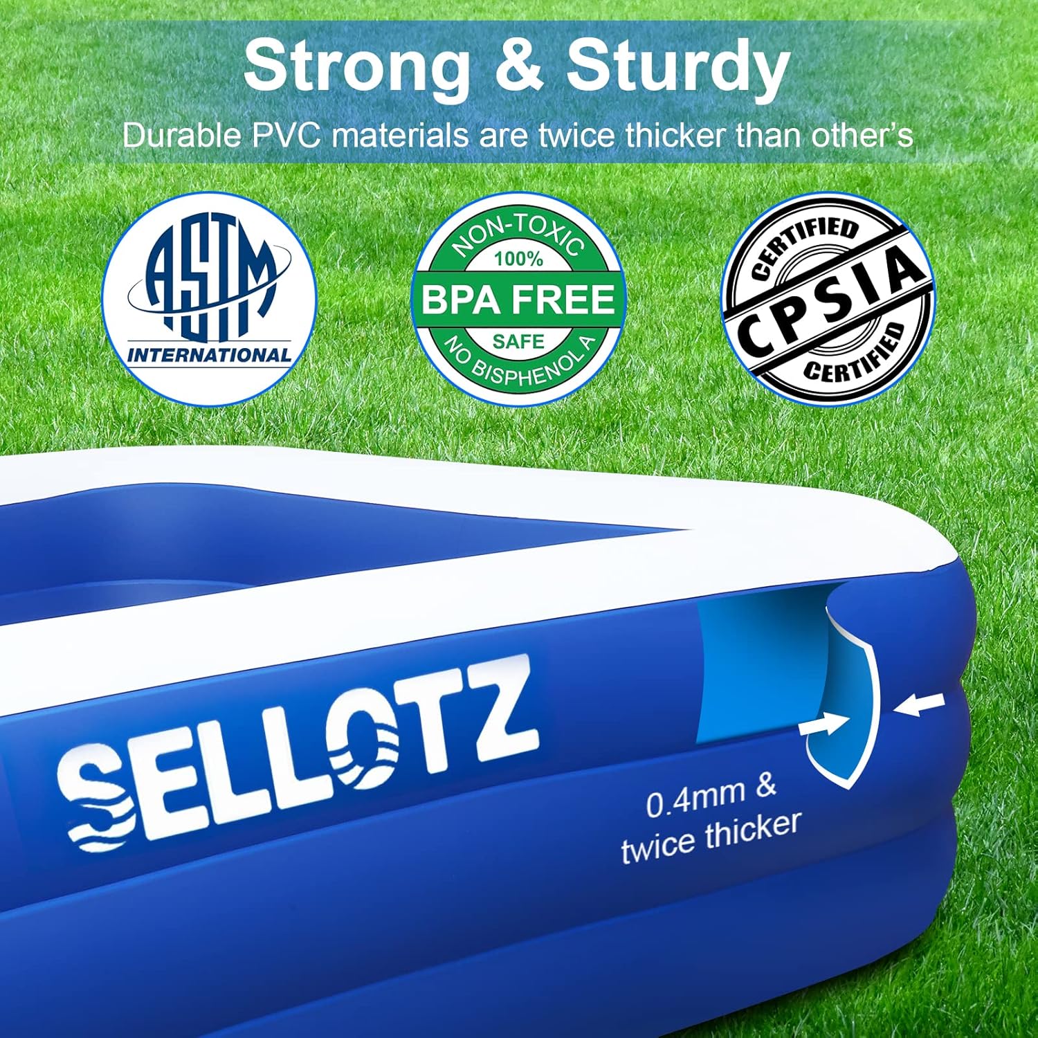 SELLOTZ Inflatable Pool 120x72x22 Inch Thickened