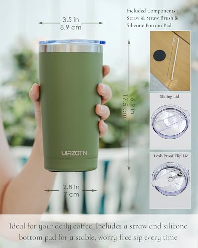 UIRZOTN 20oz Stainless Steel Coffee Tumbler Leakproof Dual Lids