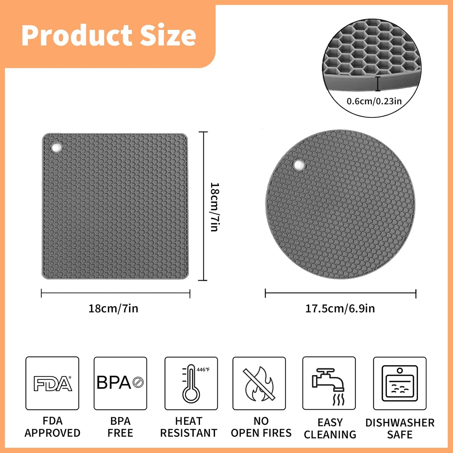 Editor's Pick: These heat-resistant mats are made of food-grade silicone material with a wide temperature resistance range. The honeycomb texture design enhances slip resistance to securely hold pots and pans. They are soft and flexible, easy to clean, and dishwasher safe. After use, they can be hung, rolled up, or stacked to save kitchen storage space.
