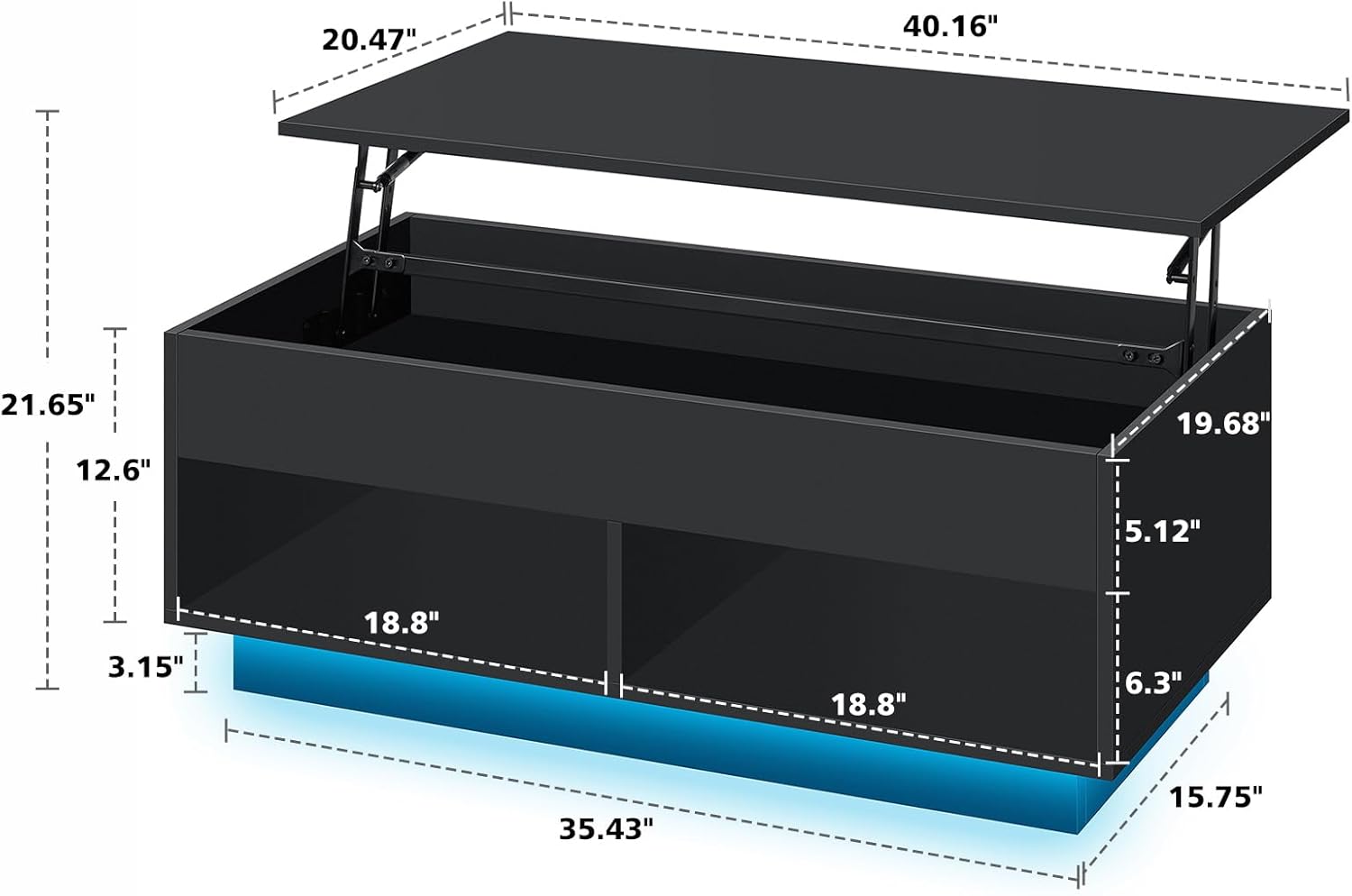 HOMMPA 40 Inch Black High Gloss LED Coffee Table