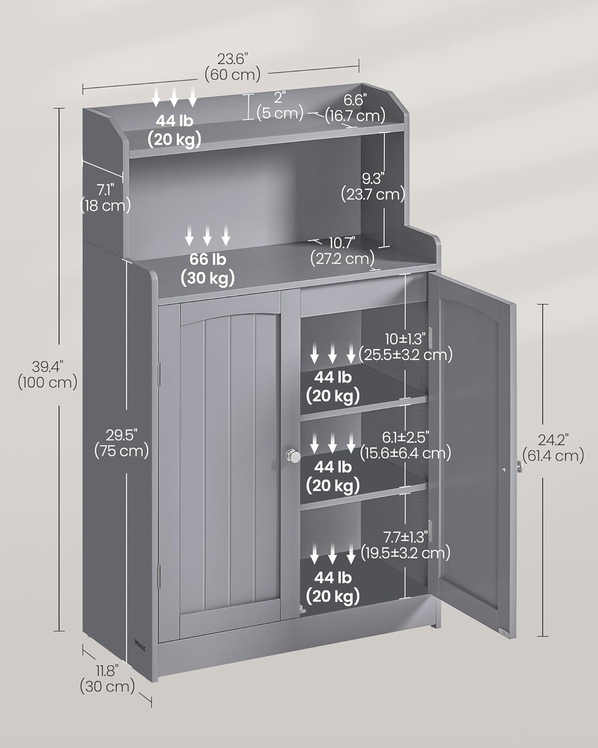 VASAGLE Bathroom Cabinet BBC770GD01S Dove Gray